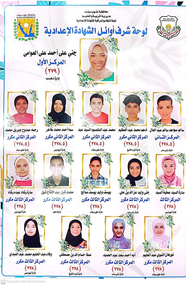 ووجه محافظ جنوب سيناء، التهنئة لأبنائه الطلاب المتفوقين والناجحين، متمنيًا لهم دوام التفوق والنجاح، في المراحل التعليمية التالية، ليصبحوا فى المقدمة وطليعة أبناء وطنهم الذين يسعون للنهوض به لمزيد من التقدم والازدهار في المستقبل.
