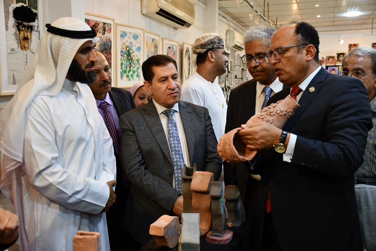 ورحب رئيس جامعة حلوان بكلا من الدكتور عبدالرحمن الرجعان المستشار الثقافي لدولة الكويت، وشهاب بن أحمد المرضوف سكرتير أول سفارة سلطنة عمان بالقاهرة، مؤكدًا أن فعاليات المعرض تسلط الضوء على مواهب الطلاب وقدراتهم الإبداعية.
