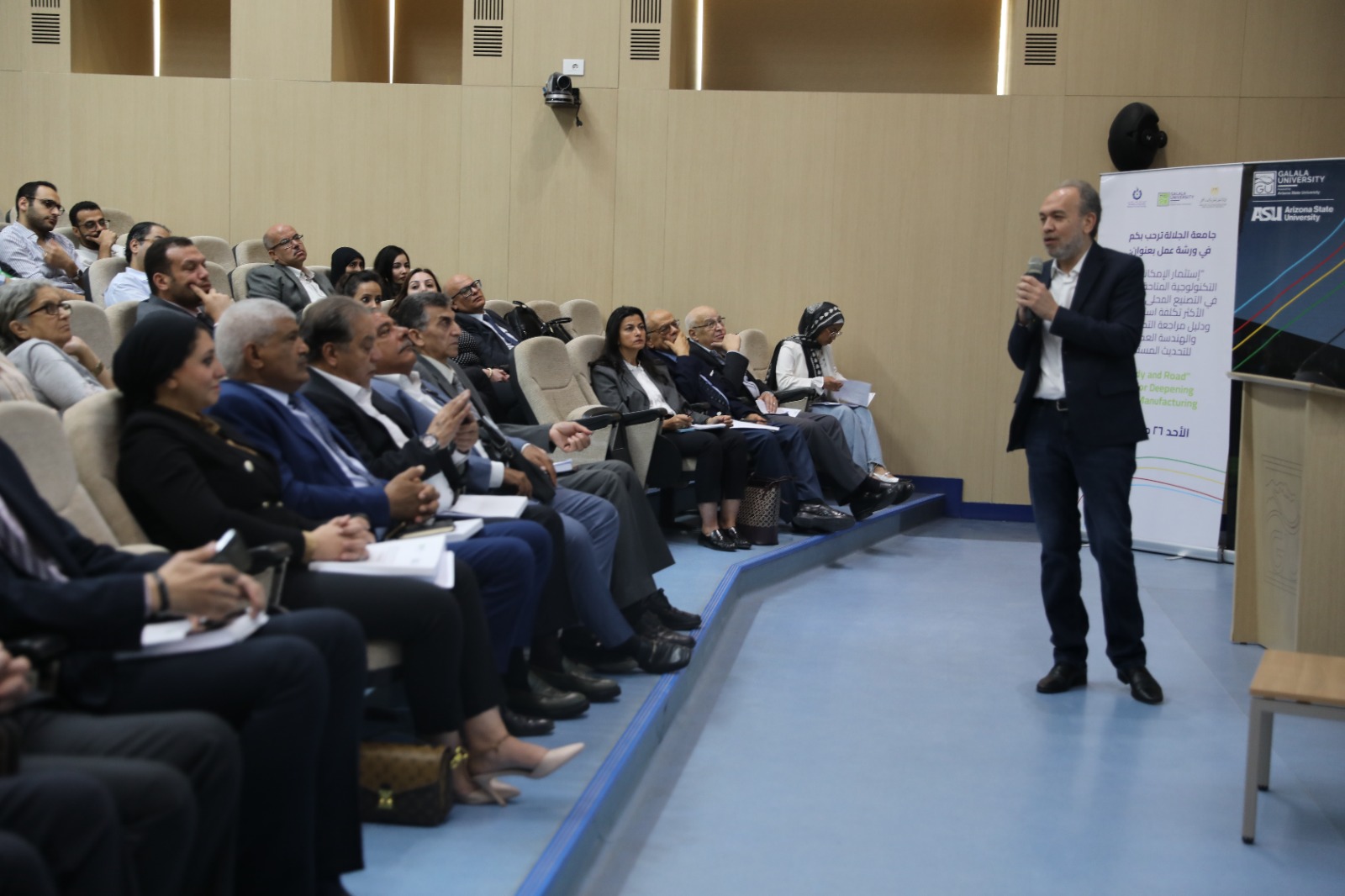 نظمت جامعة الجلالة، ورشة عمل حول استثمار الإمكانيات التكنولوجية المتاحة بالدولة في التصنيع المحلي للأصناف الأكثر تكلفة استيرادية؛ بهدف تحديد الصناعات والمنتجات التي يمكن تعميق التصنيع المحلي بها، وتحديد الجهات الصناعية المختلفة التي لديها إمكانيات للتصنيع المحلي، بالإضافة إلى تنفيذ دراسات للمؤشرات الاقتصادية للمنتجات الأكثر استيرادًا، وعمل دليل مراجعة الهندسة العكسية وتكوين مجموعات عمل اقتصادية وبحثية وصناعية لوضع خارطة طريق للتصنيع المحلي، برعاية الدكتور أيمن عاشور وزير التعليم العالي والبحث العلمي.