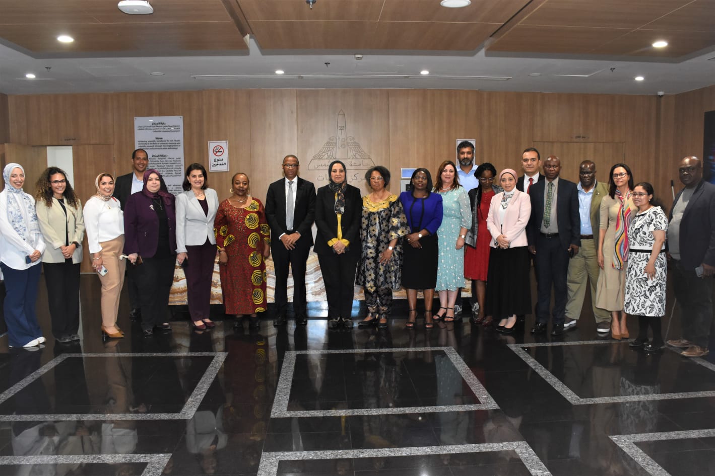 استقبلت الدكتورة غادة فاروق نائب رئيس جامعة عين شمس لشئون خدمة المجتمع وتنمية البيئة، نيابة عن الدكتور محمد ضياء زين العابدين رئيس الجامعة، وفدًا من وزراء التعليم الأفارقة يضم أنجيلي ماكومبو نوتومبا، نائبة الأمين التنفيذي للتكامل الإقليمي للمجموعة الإنمائية للجنوب الأفريقي SADC، ولويزا ماريا جريلو، وزيرة التعليم في أنجولا، ونتوي رابابا، وزير التعليم في ليسوتو، وإستر آنا نغيبوندوكا، وزيرة التعليم والفنون والثقافة في ناميبيا، ونوريانا مونيكو، السكرتيرة الدائمة لوزارة التربية والتعليم في زامبيا، مندوبة الوزير.