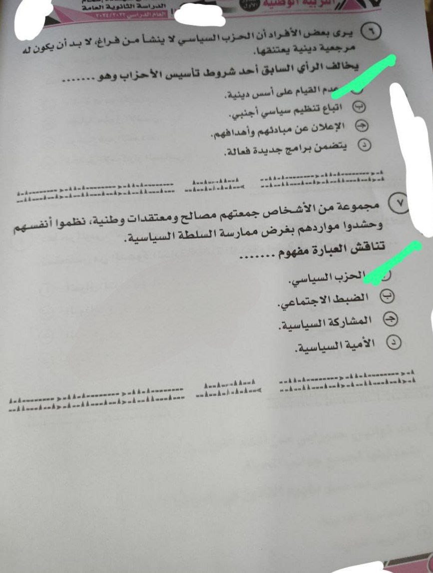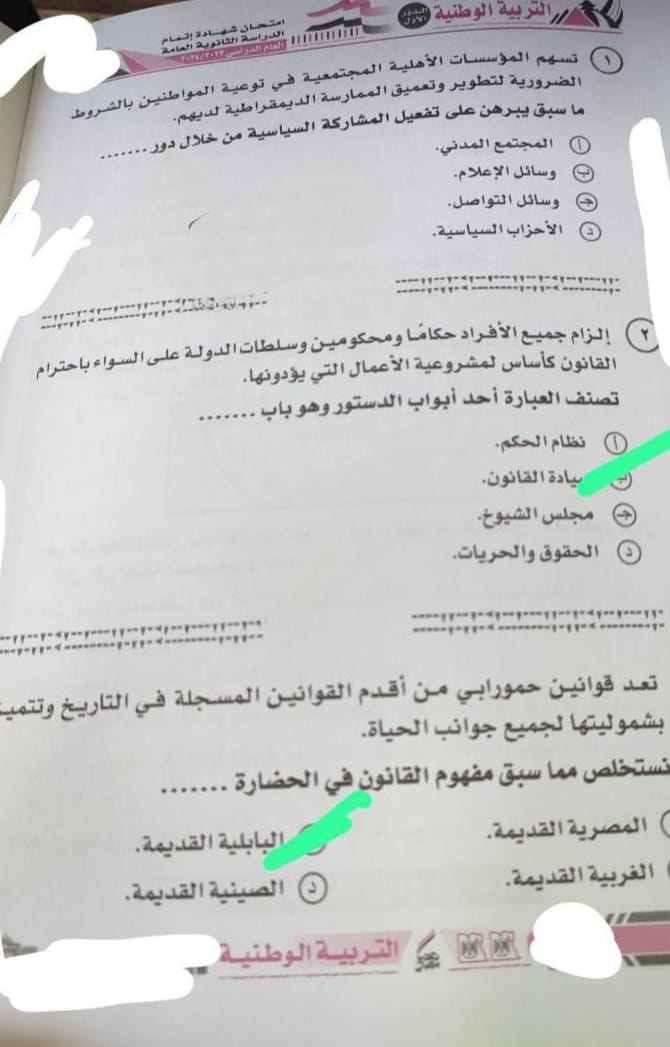 تداولت مجموعات الغش الإلكتروني على تليجرام منذ قليل، صور لامتحان التربية الوطنية الذي يؤدية طلاب الثانوية العامة 2024 الآن باللجان، بالإجابات كاملة.