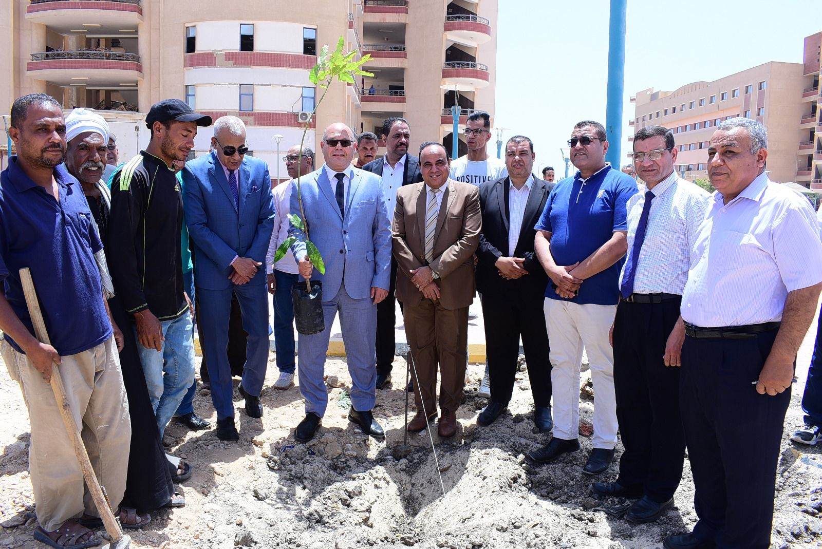 حيث شارك رئيس جامعة سوهاج، في زراعة بعض الأشجار المثمرة في المساحات الواسعة المحيطة بمبنى كلية التربية بالحرم الجامعي الجديد، وصاحبه الدكتور عبدالناصر يس نائب رئيس الجامعة لشئون التعليم والطلاب، والدكتور خالد عمران نائب رئيس الجامعة لشئون خدمة المجتمع وتنمية البيئة، والدكتور حمدي حسانين عميد كلية الدراسات العليا ومدير مركز التنمية المستدامة، والدكتور عبدالعليم سعد منسق المبادرة، والدكتور ياسر عبدالفتاح مدير عام الشئون الإدارية.