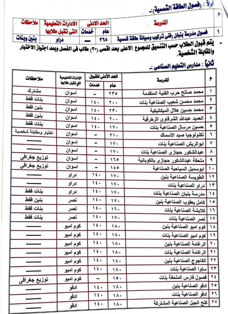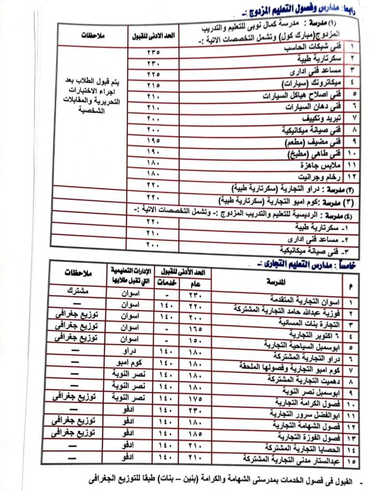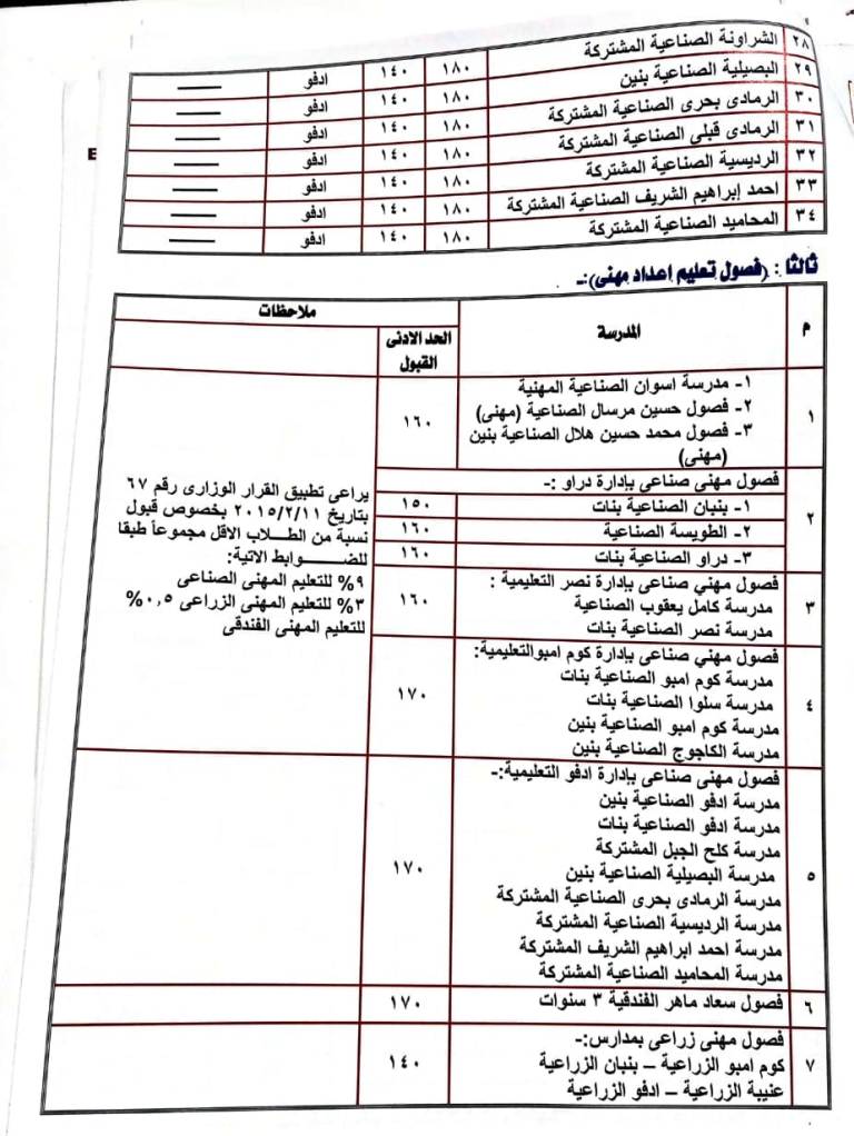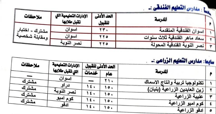 محافظ أسوان يعتمد درجات قبول الطلاب بمدارس التعليم الفنى والمهنى والخدمات