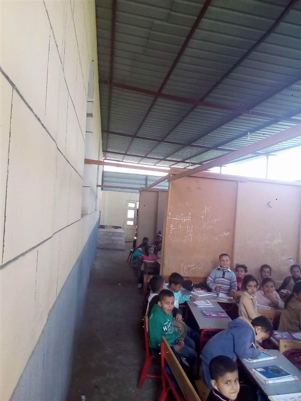 داخل الفصول في الشارع، مطالبا بسرعة إنهاء إجراءات ترميم المدرسه لإنقاذ هؤلاء الأطفال،