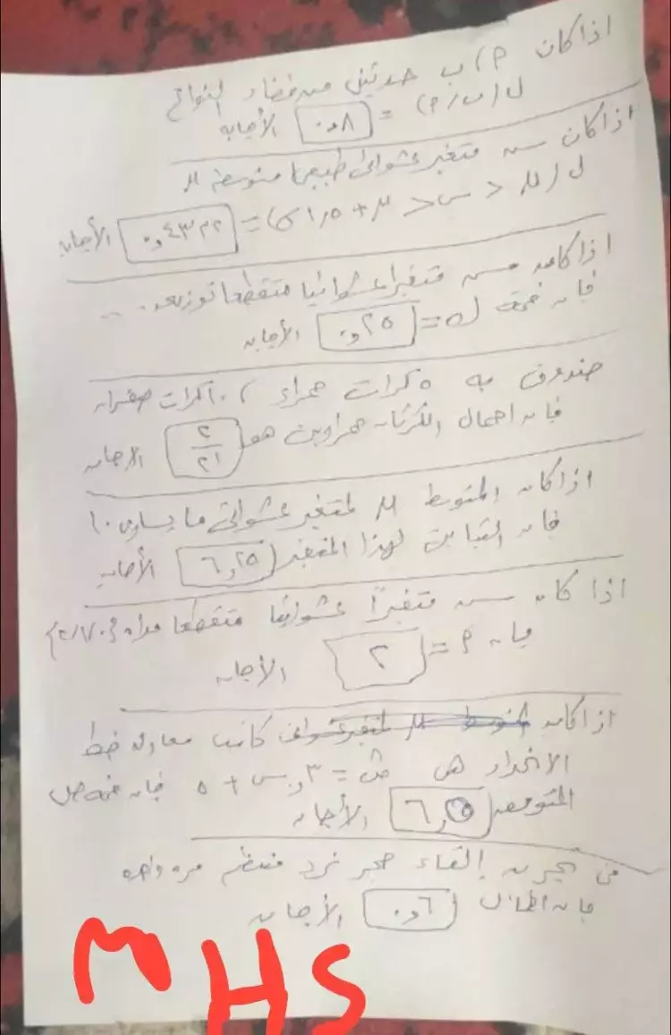 ونشرت العديد من الصفحات حل امتحان الإحصاء للثانوية العامة 2024، وفقا لإجابات بعض المعلمين، إلا أنها غير رسمية من الوزارة.