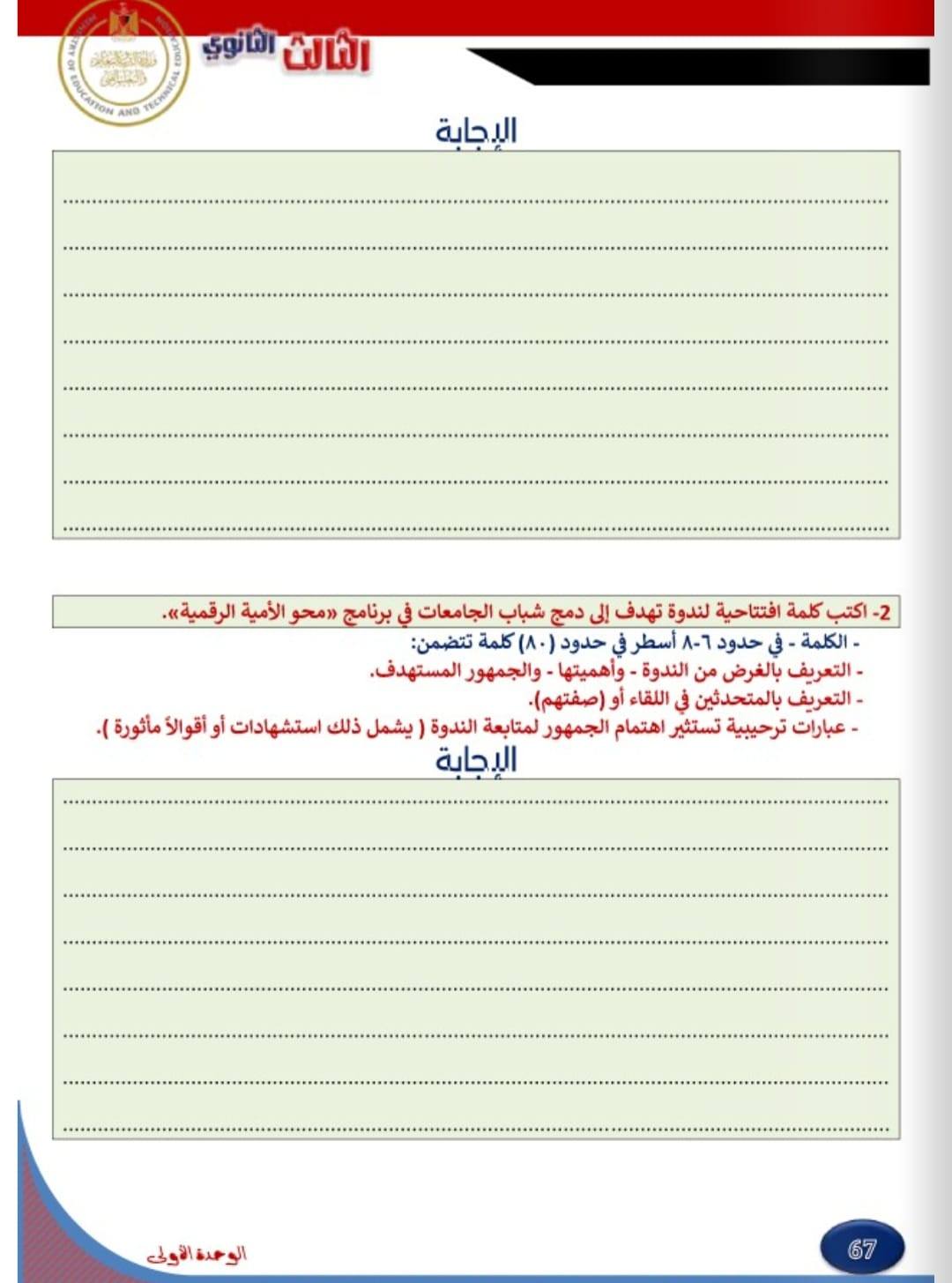 امتحان مادة اللغة العربية للثانوية العامة 2024