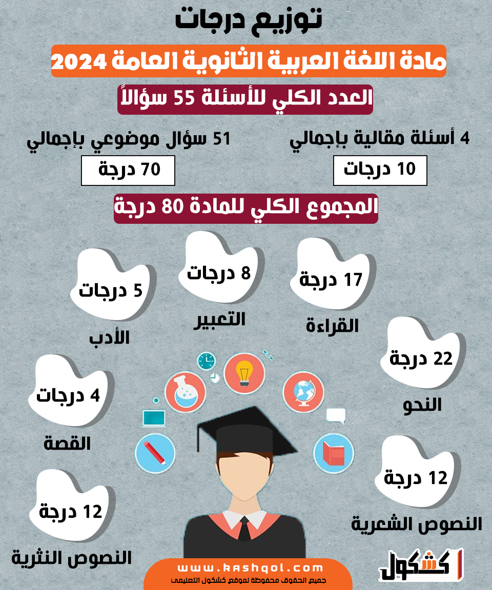 انفوجراف.. توزيع درجات مادة اللغة العربية الثانوية العامة 2024
