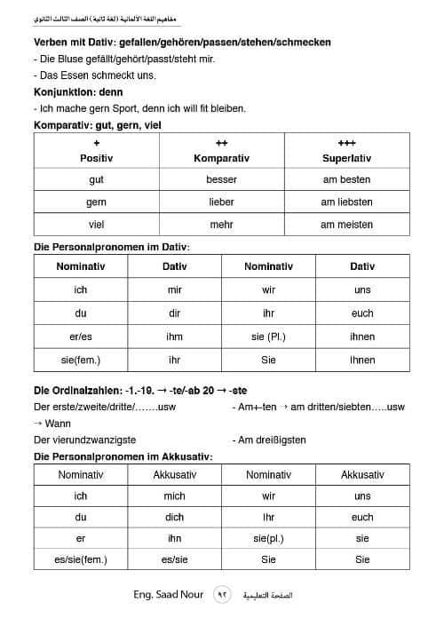 وفيما يلي ينشر كشكول أهم مفاهيم مادة اللغة الألمانية لـ الثانوية العامة 2024:
