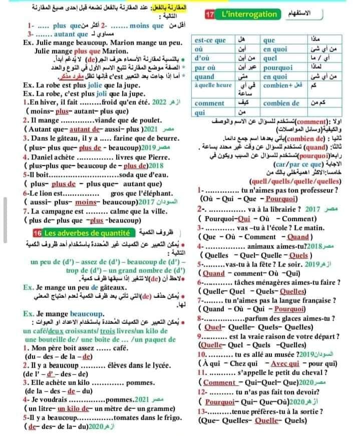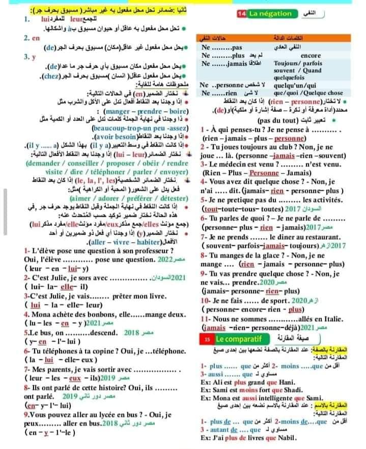 ونقدم في الصور التالية، مراجعة تشمل أهم الأسئلة المتوقعة في امتحان اللغة الفرنسية: