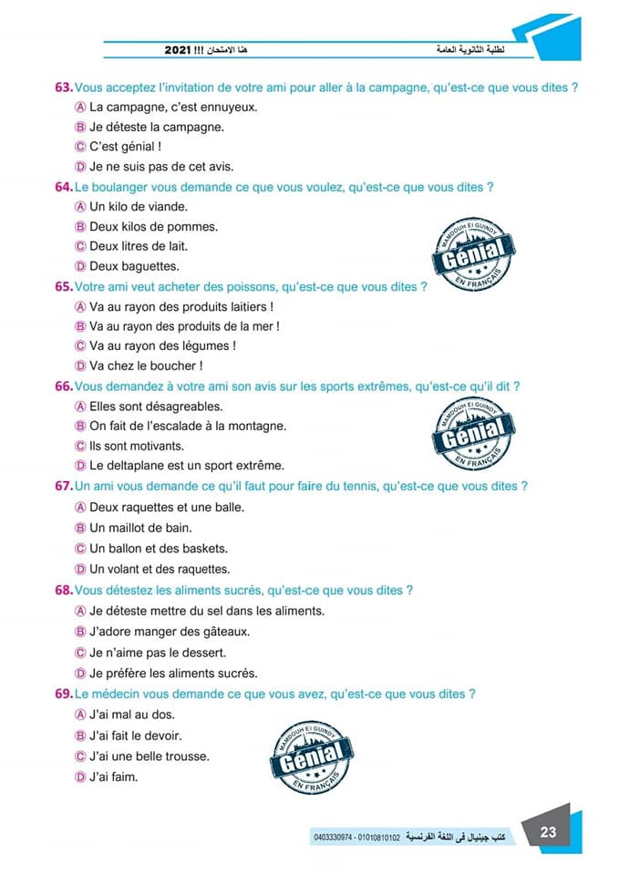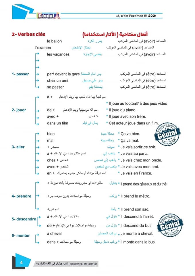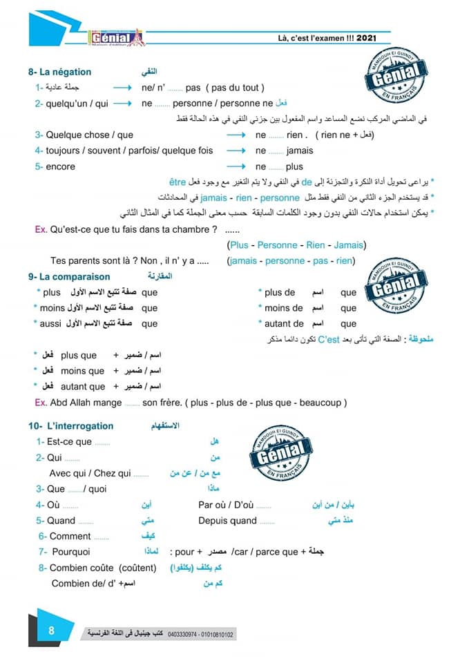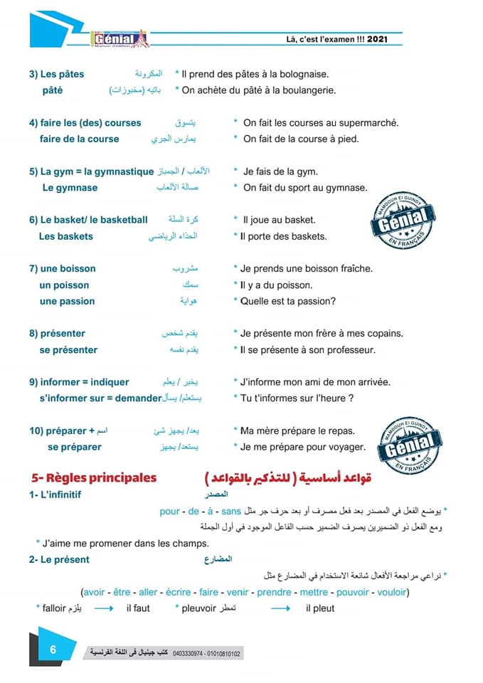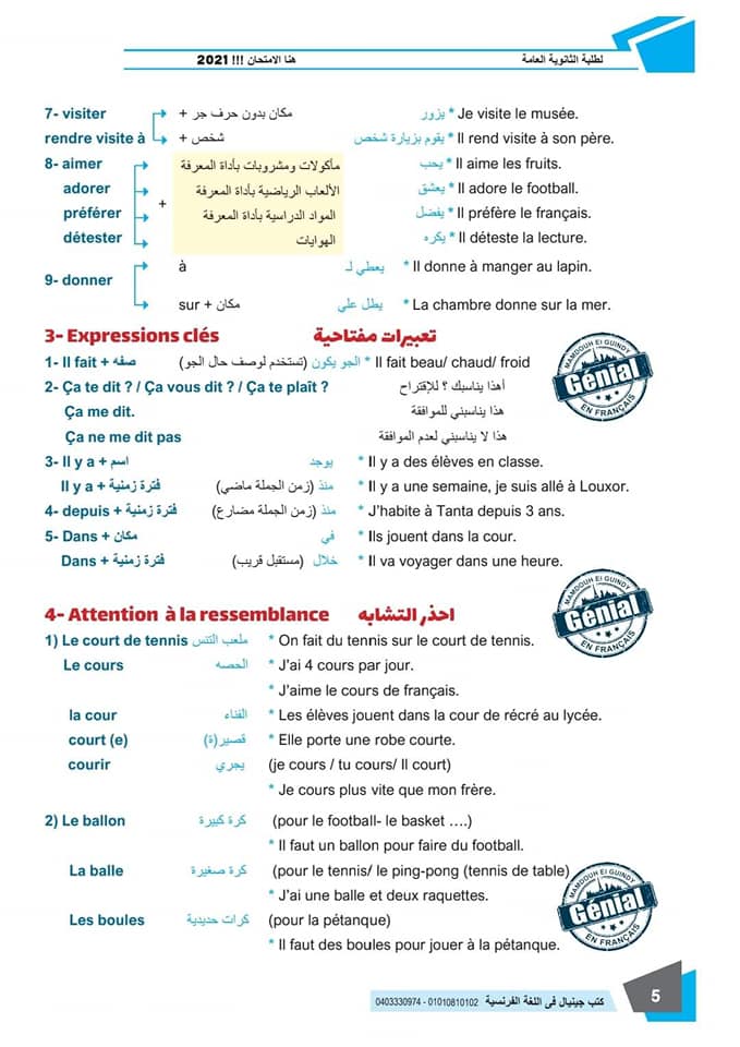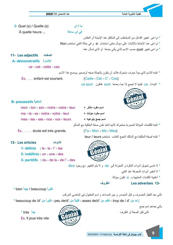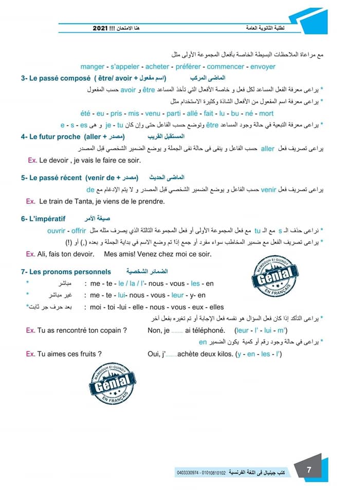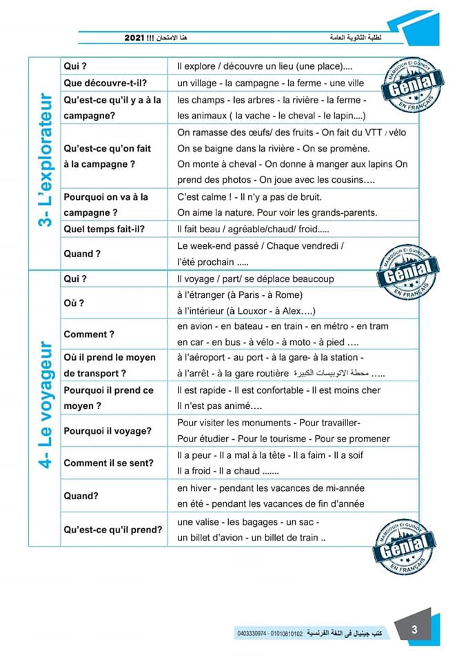 ونقدم لكم مراجعة ليلة الامتحان في مادة اللغة الفرنسية للثانوية العامة ٢٠٢٤م من كتب جينيال: