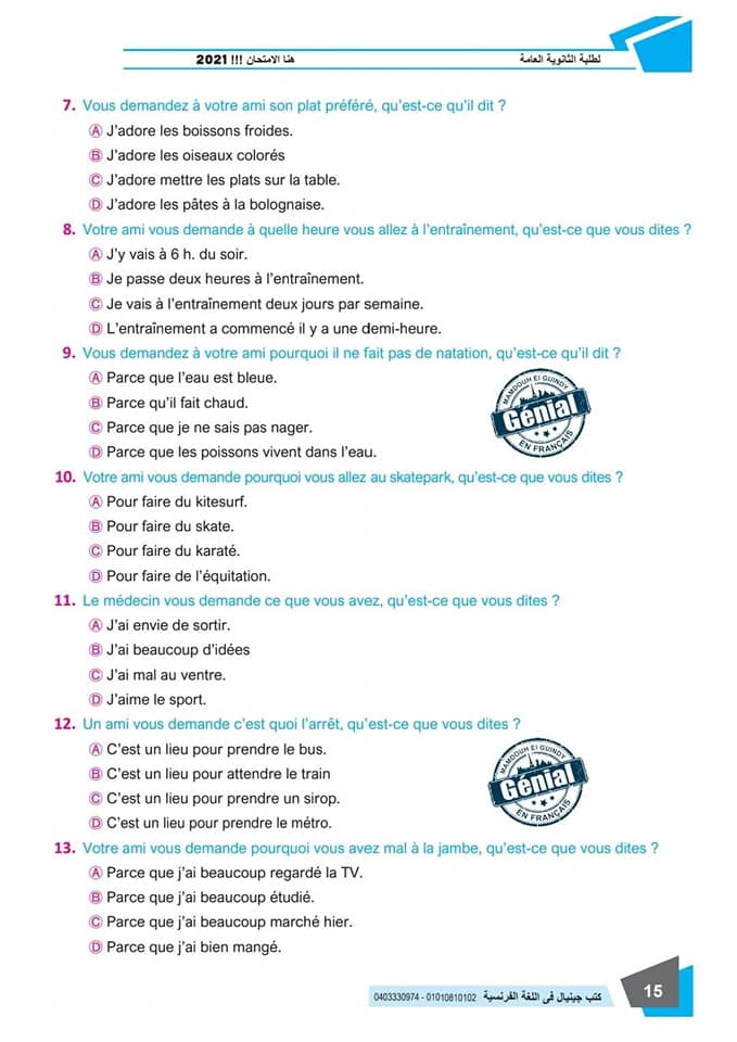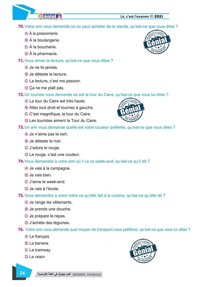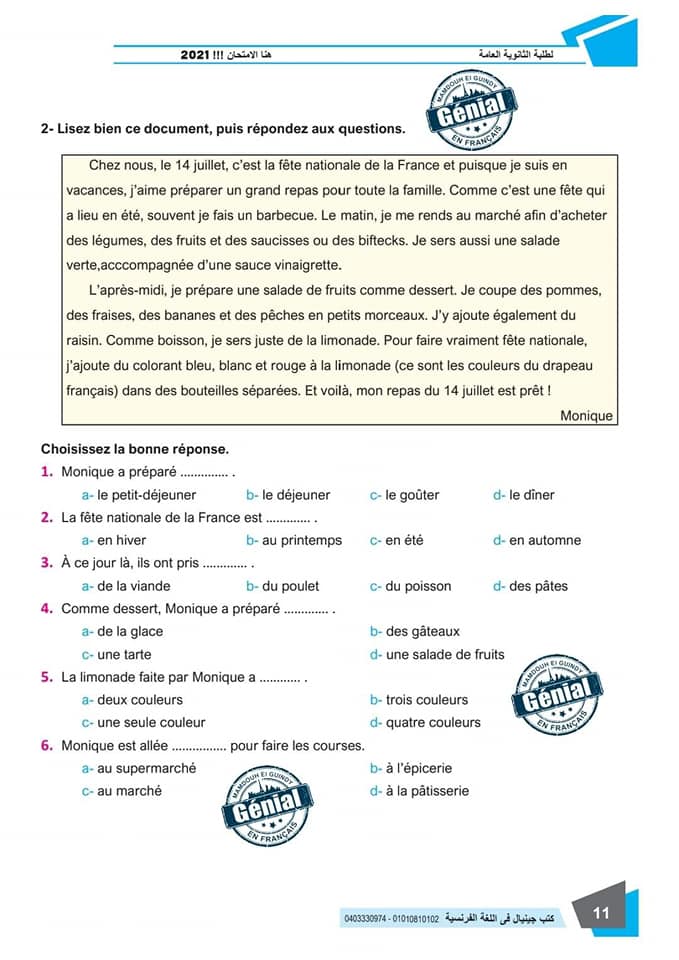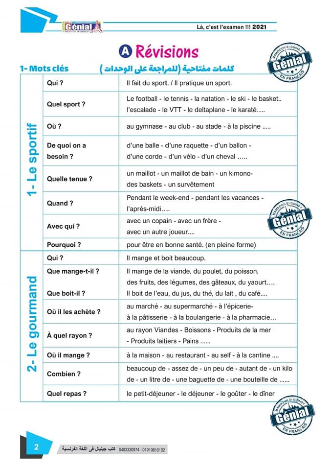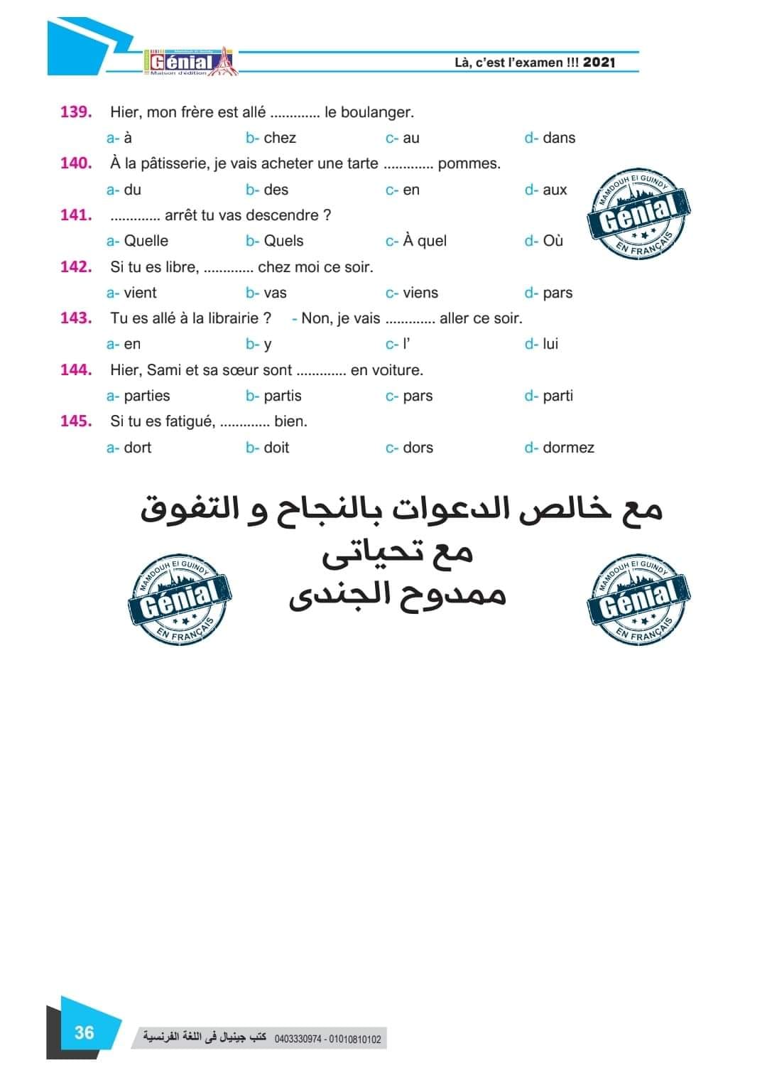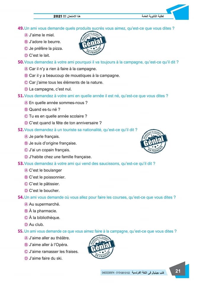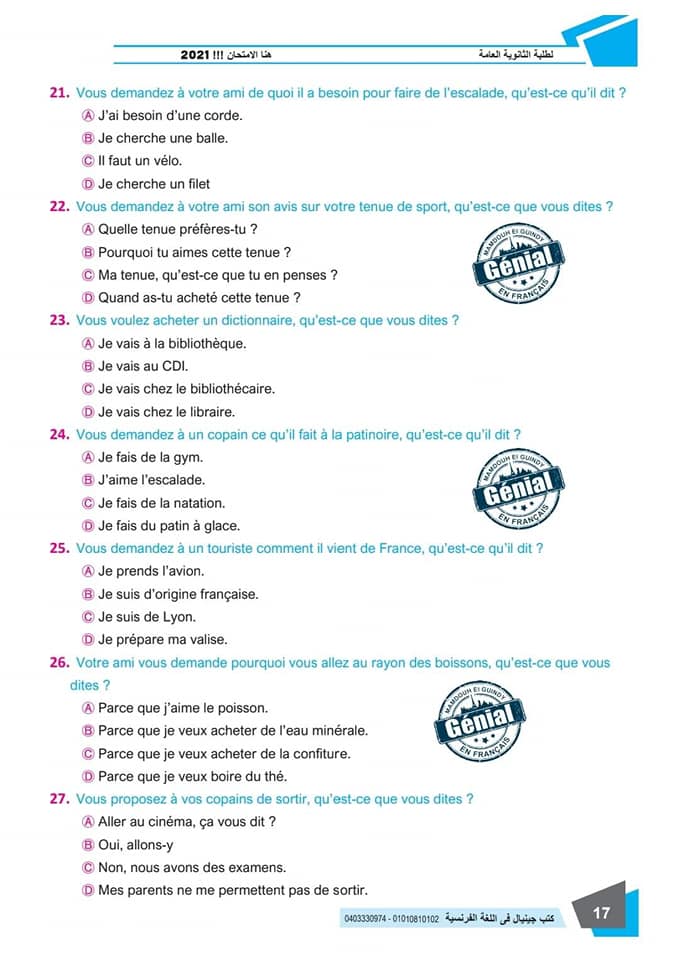 ونقدم لكم مراجعة ليلة الامتحان في مادة اللغة الفرنسية للثانوية العامة ٢٠٢٤م من كتب جينيال: