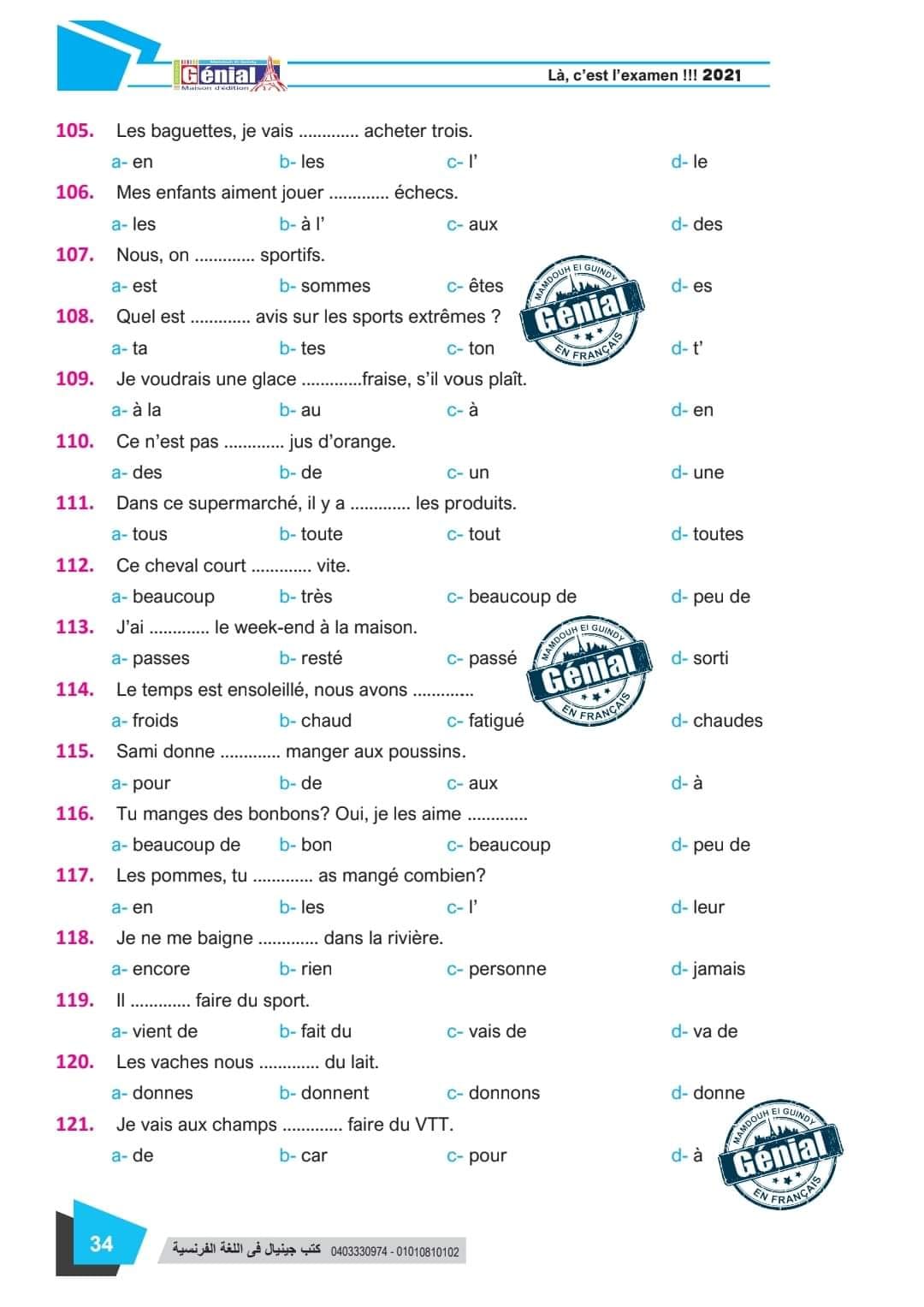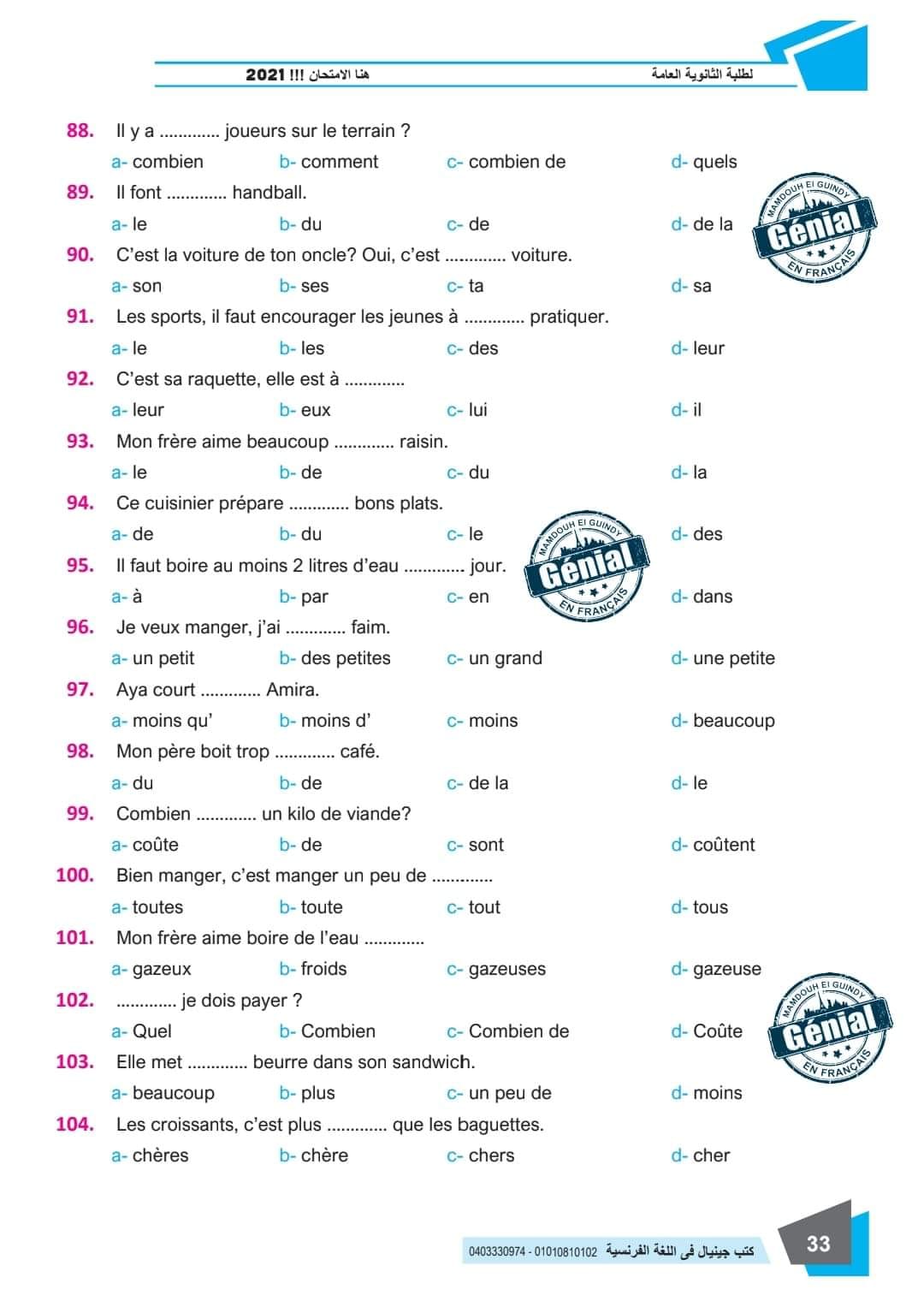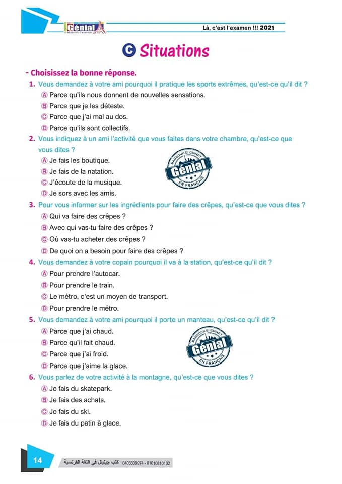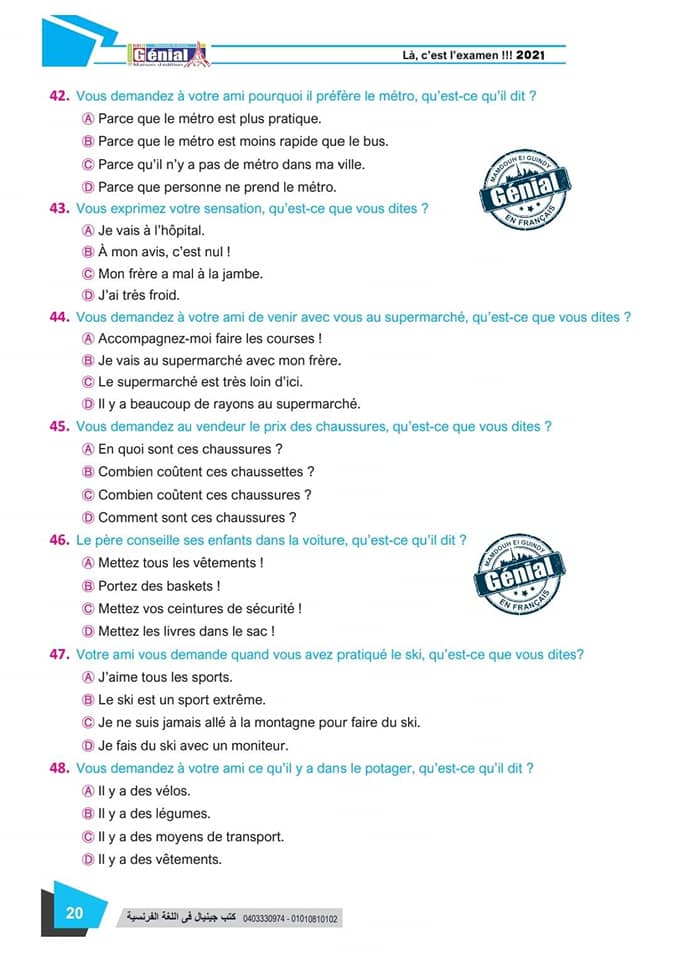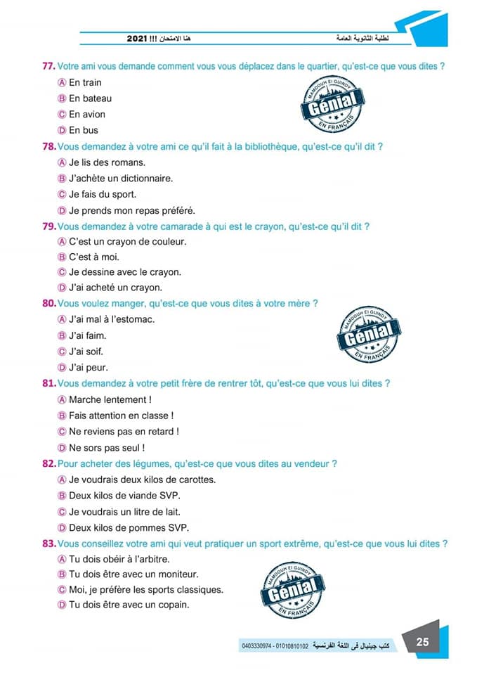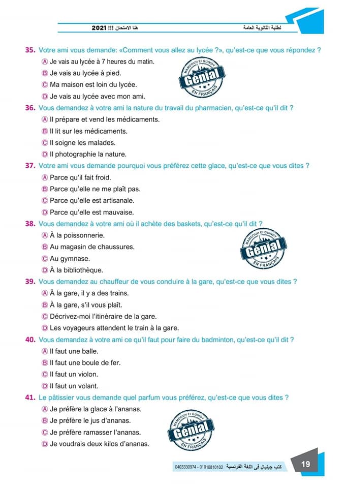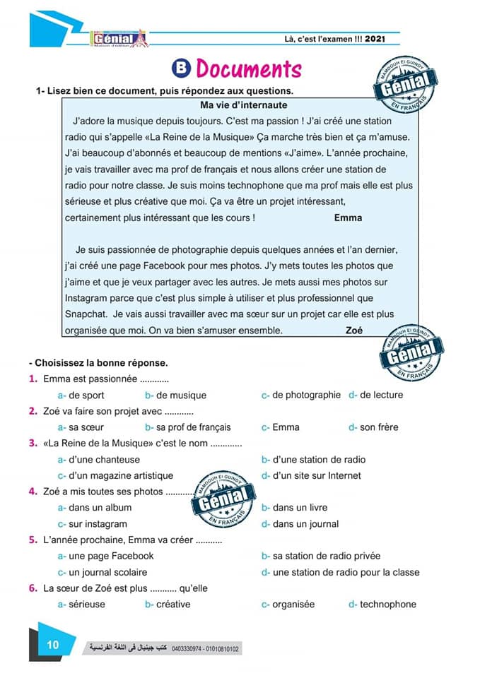 ونقدم لكم مراجعة ليلة الامتحان في مادة اللغة الفرنسية للثانوية العامة ٢٠٢٤م من كتب جينيال: