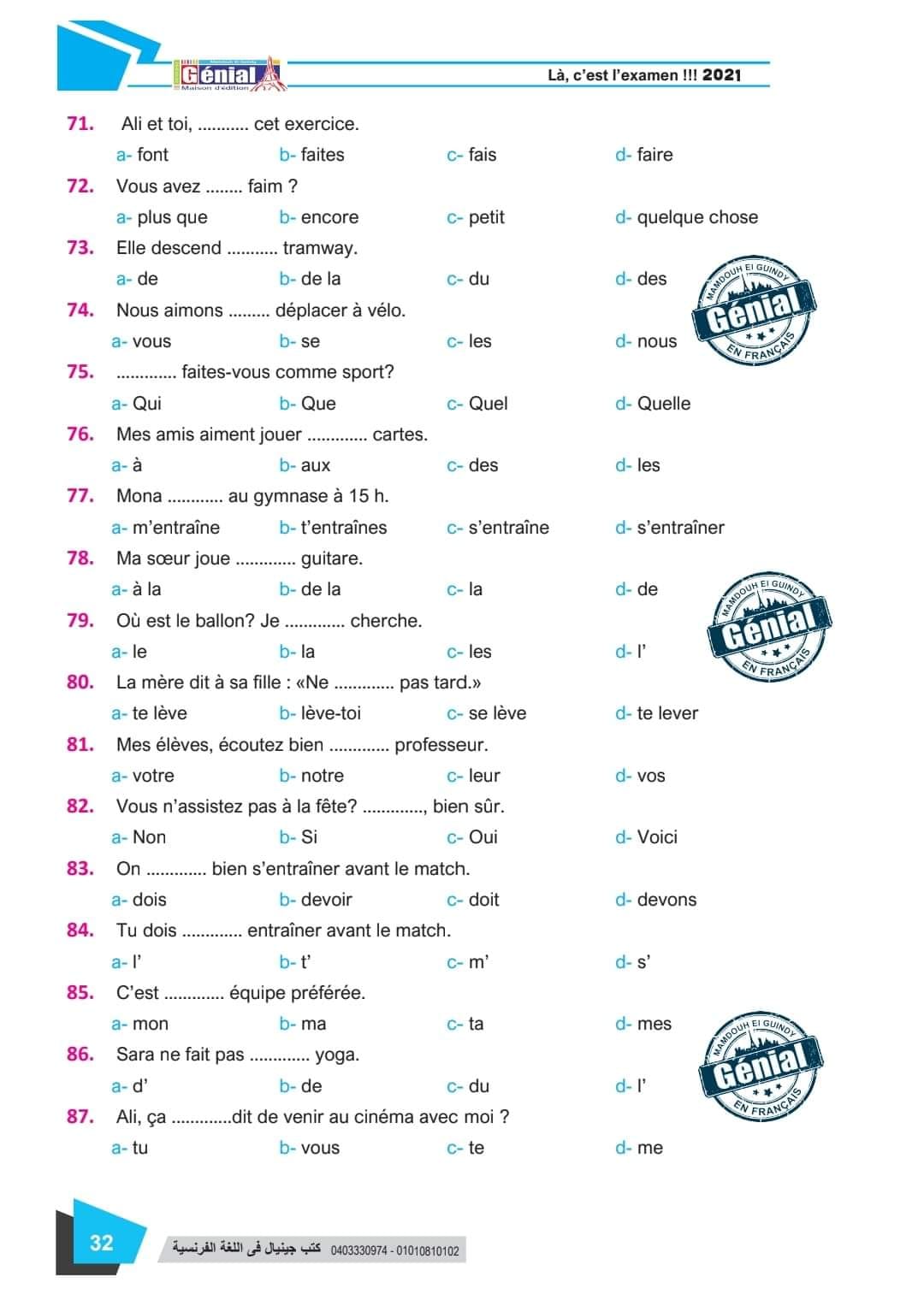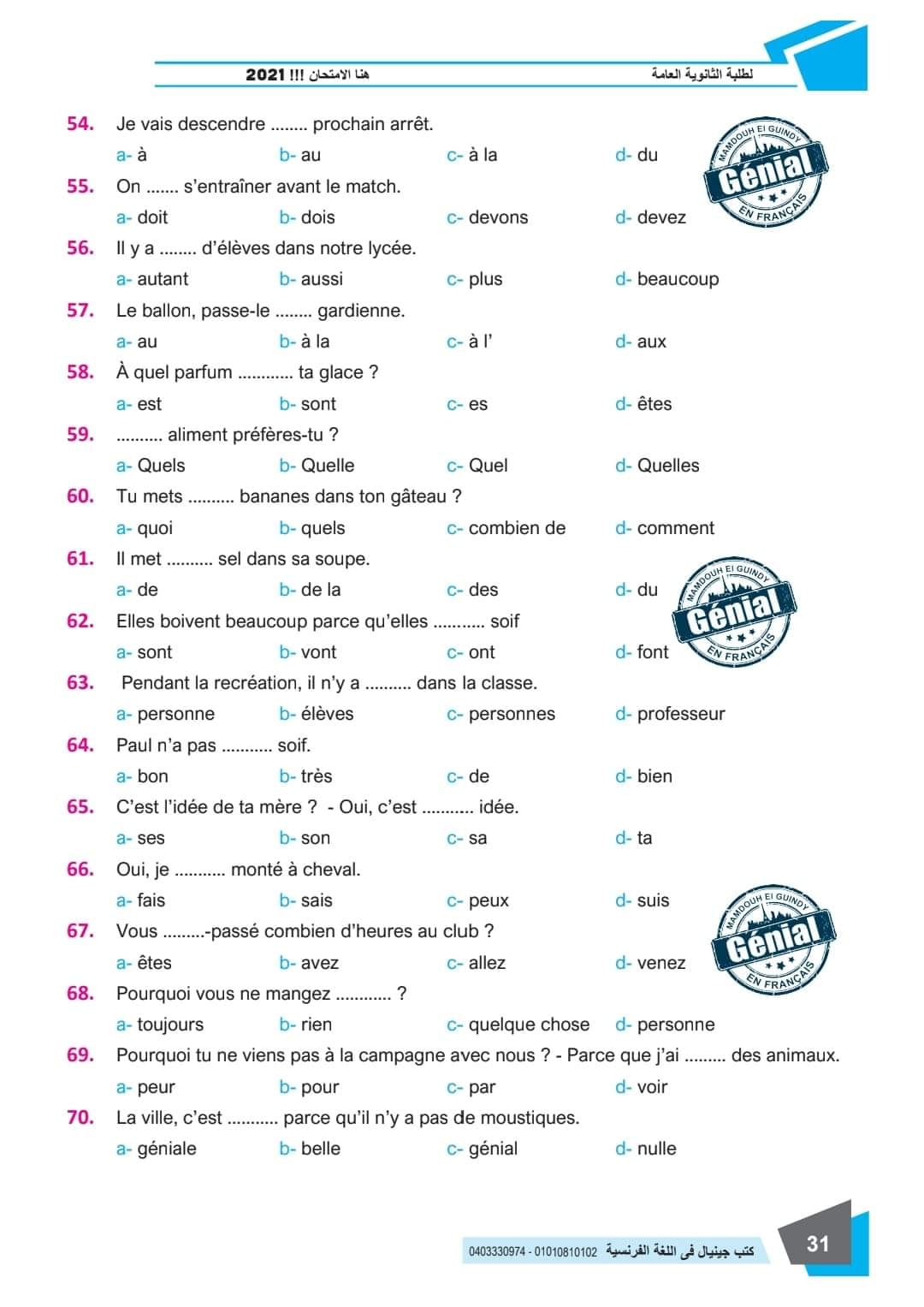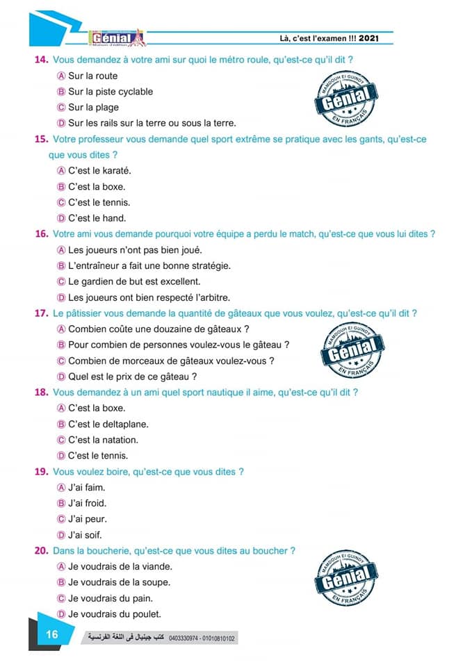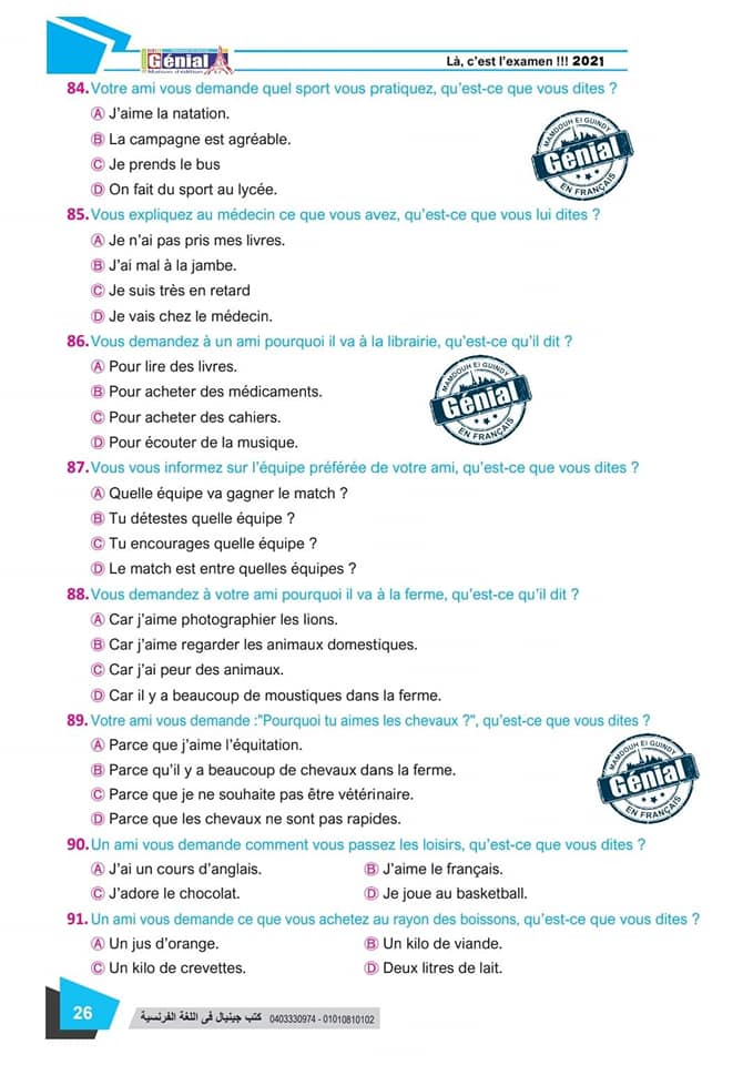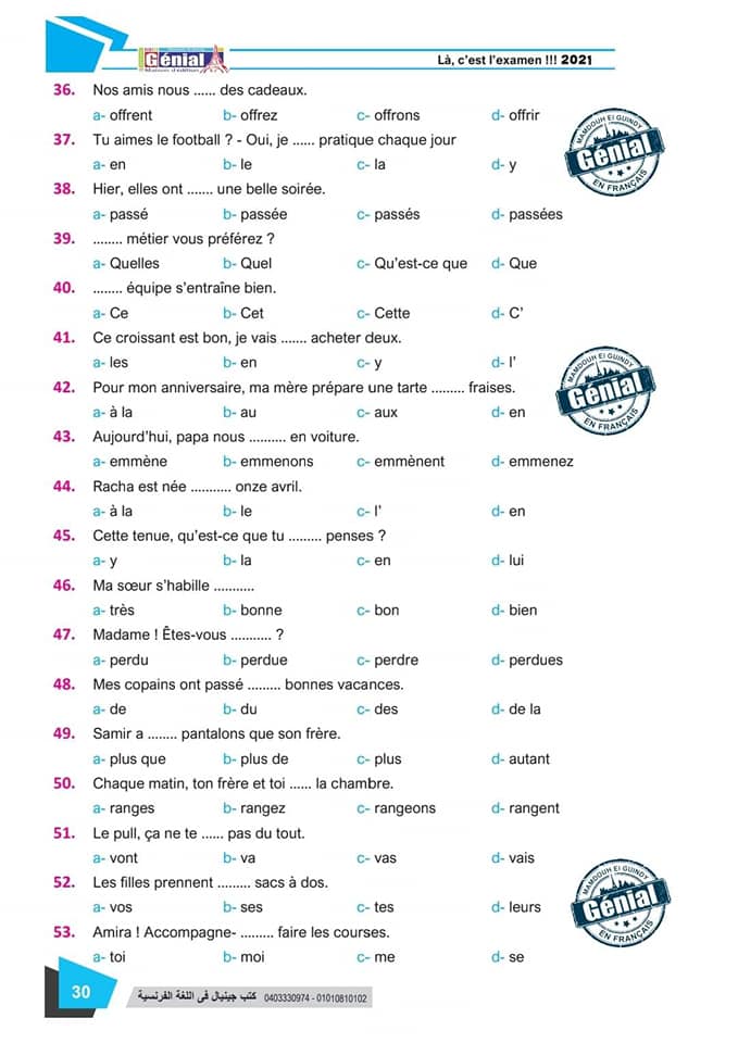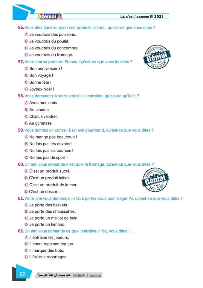 ونقدم لكم مراجعة ليلة الامتحان في مادة اللغة الفرنسية للثانوية العامة ٢٠٢٤م من كتب جينيال: