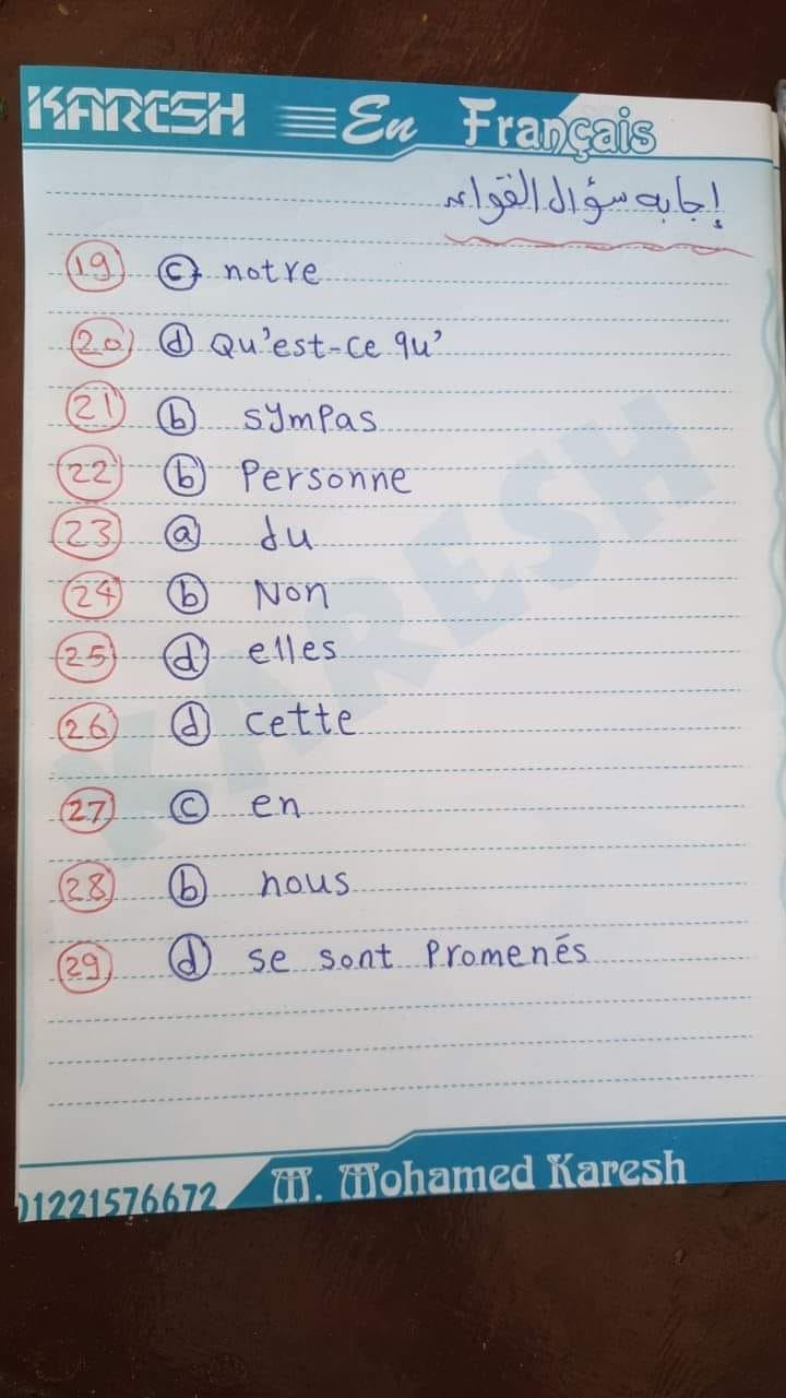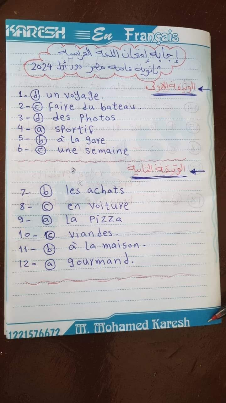 - إجابة امتحان الفرنساوي 3 ثانوي 2024