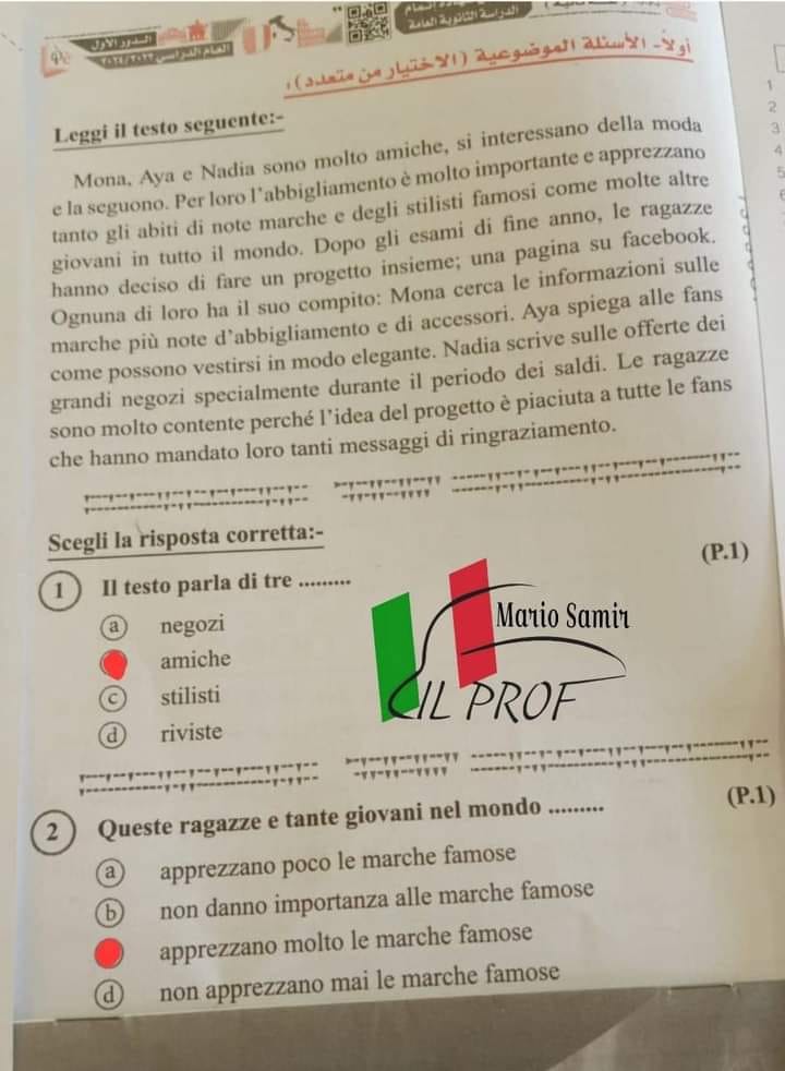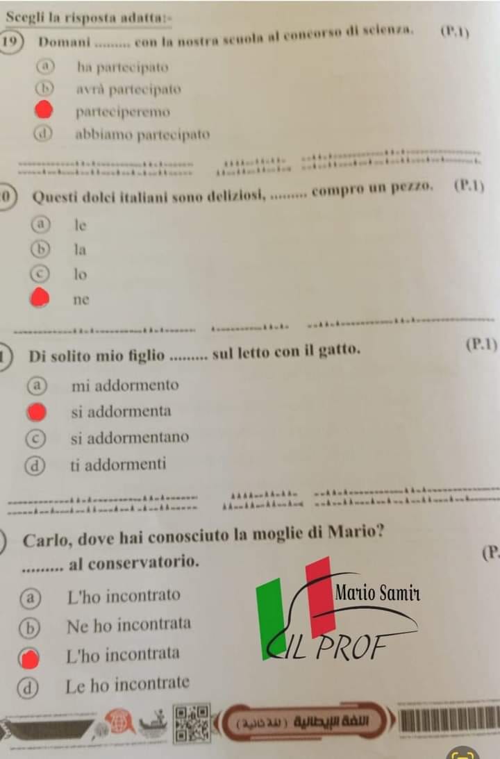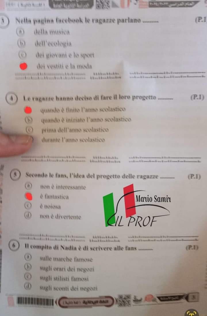 نموذج إجابة امتحان اللغة الأجنبية الثانية للثانوية العامة 2024 - حل امتحان الإيطالي