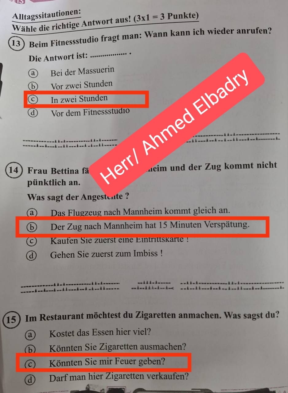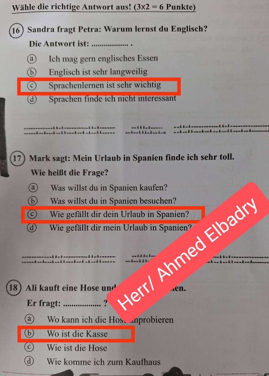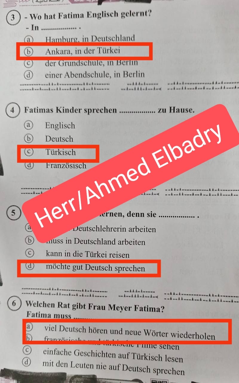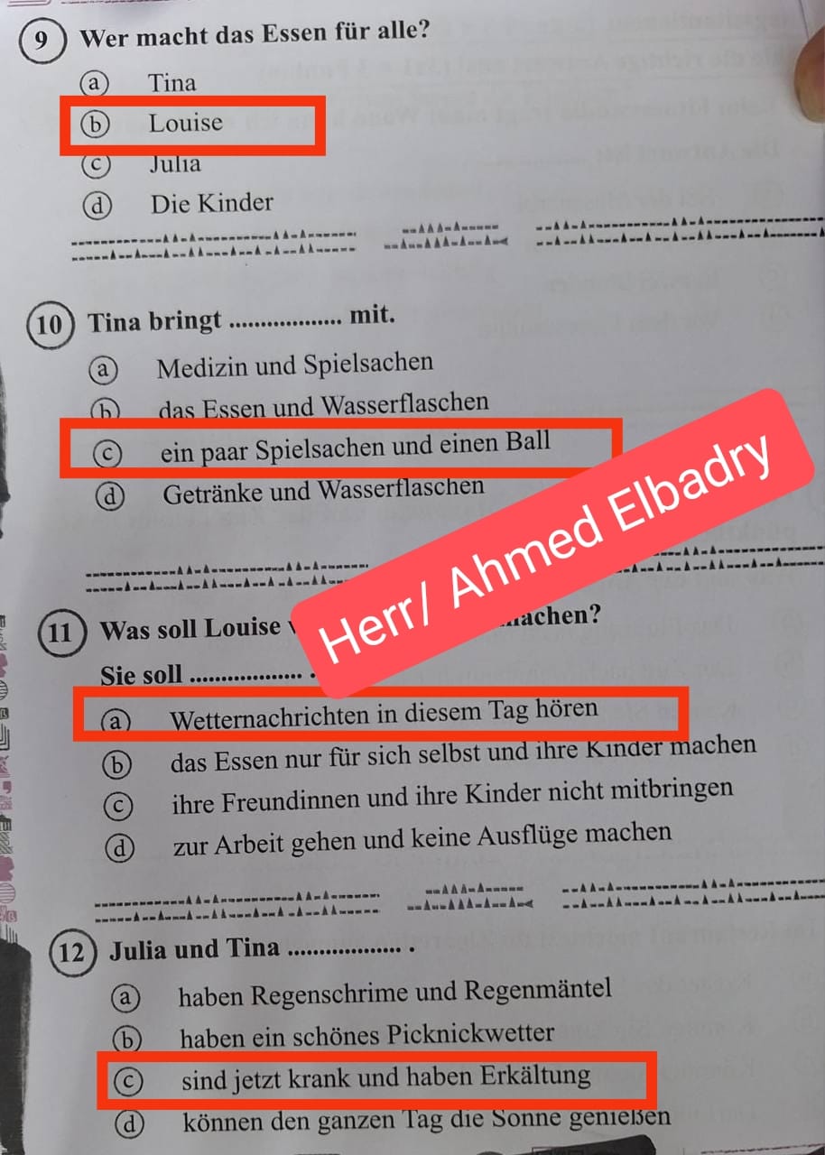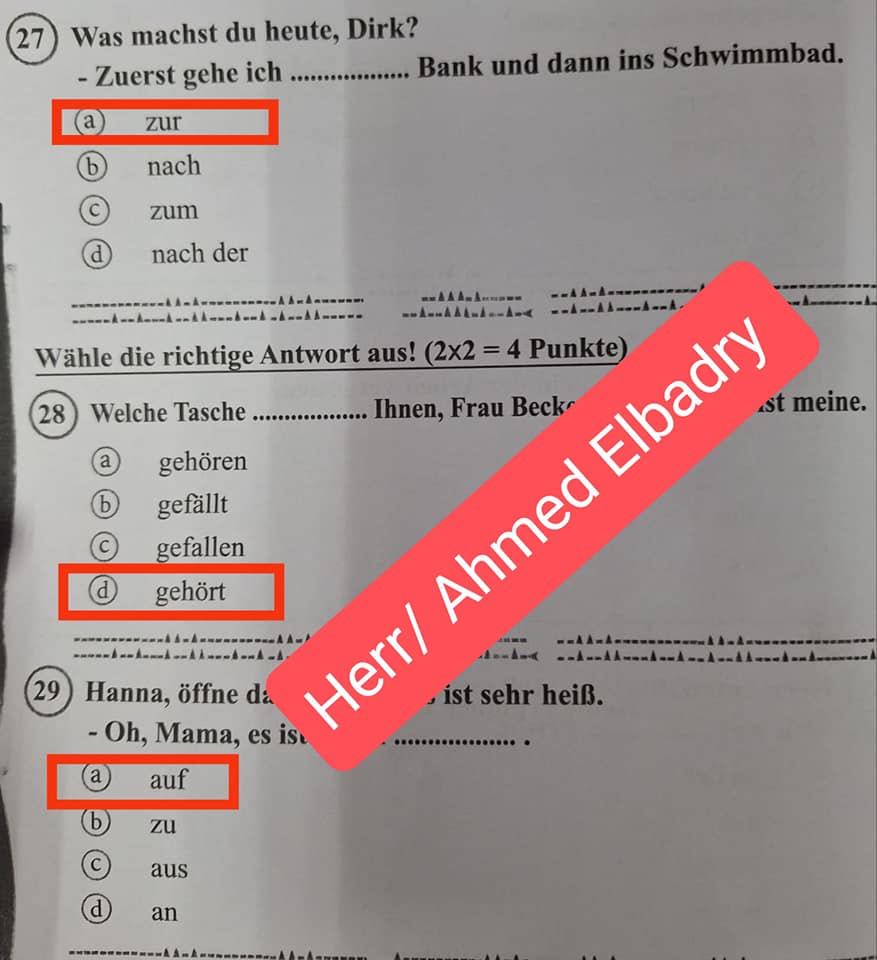 نموذج إجابة امتحان اللغة الأجنبية الثانية للثانوية العامة 2024 - حل امتحان الألماني