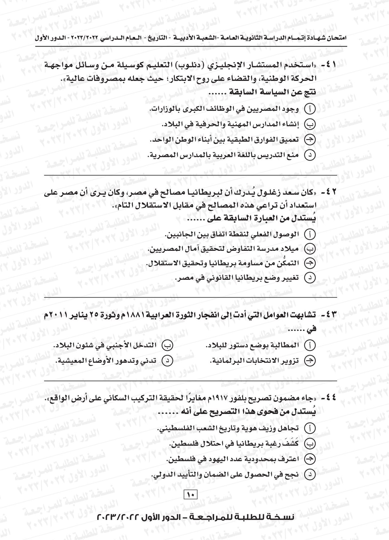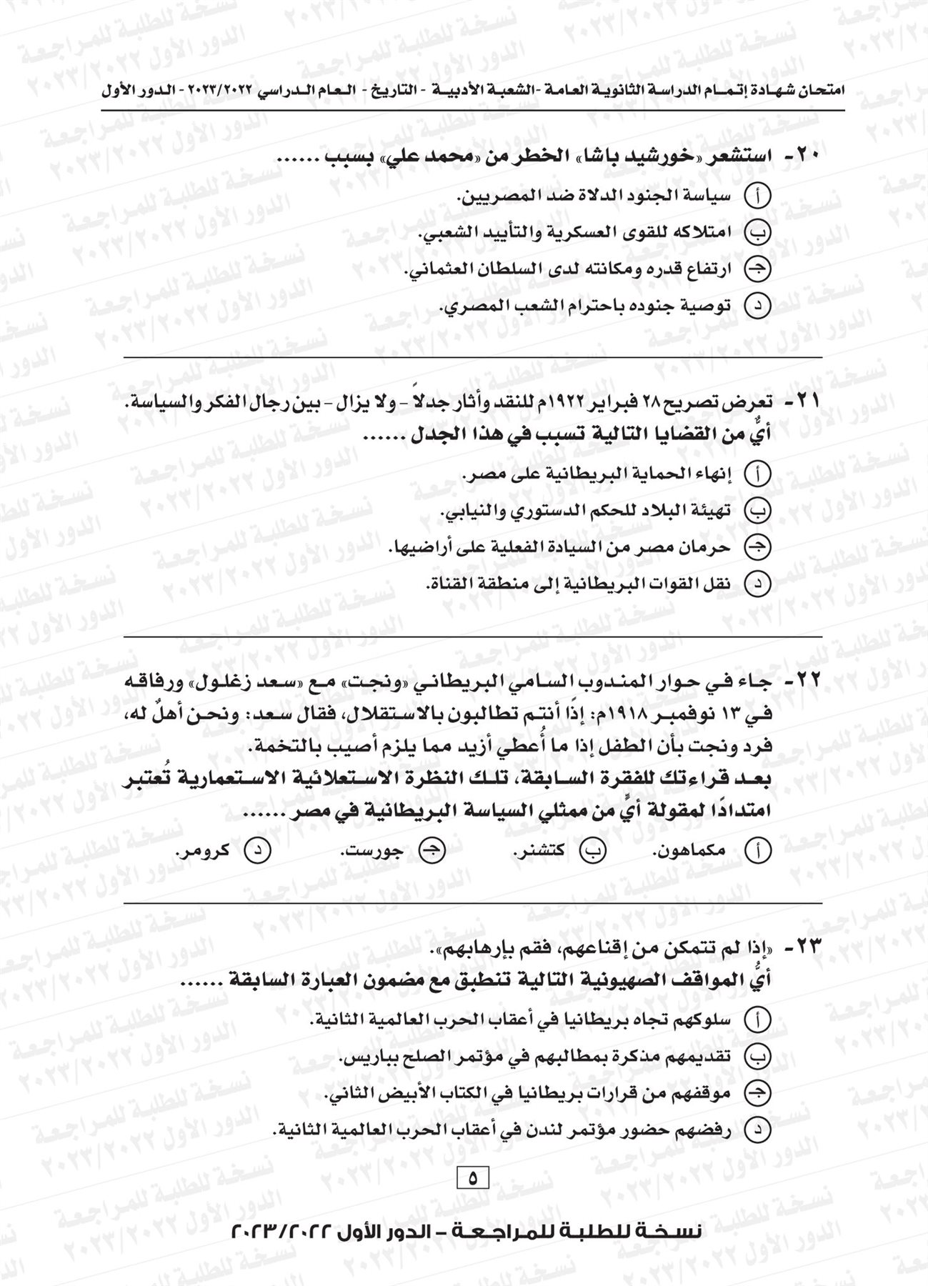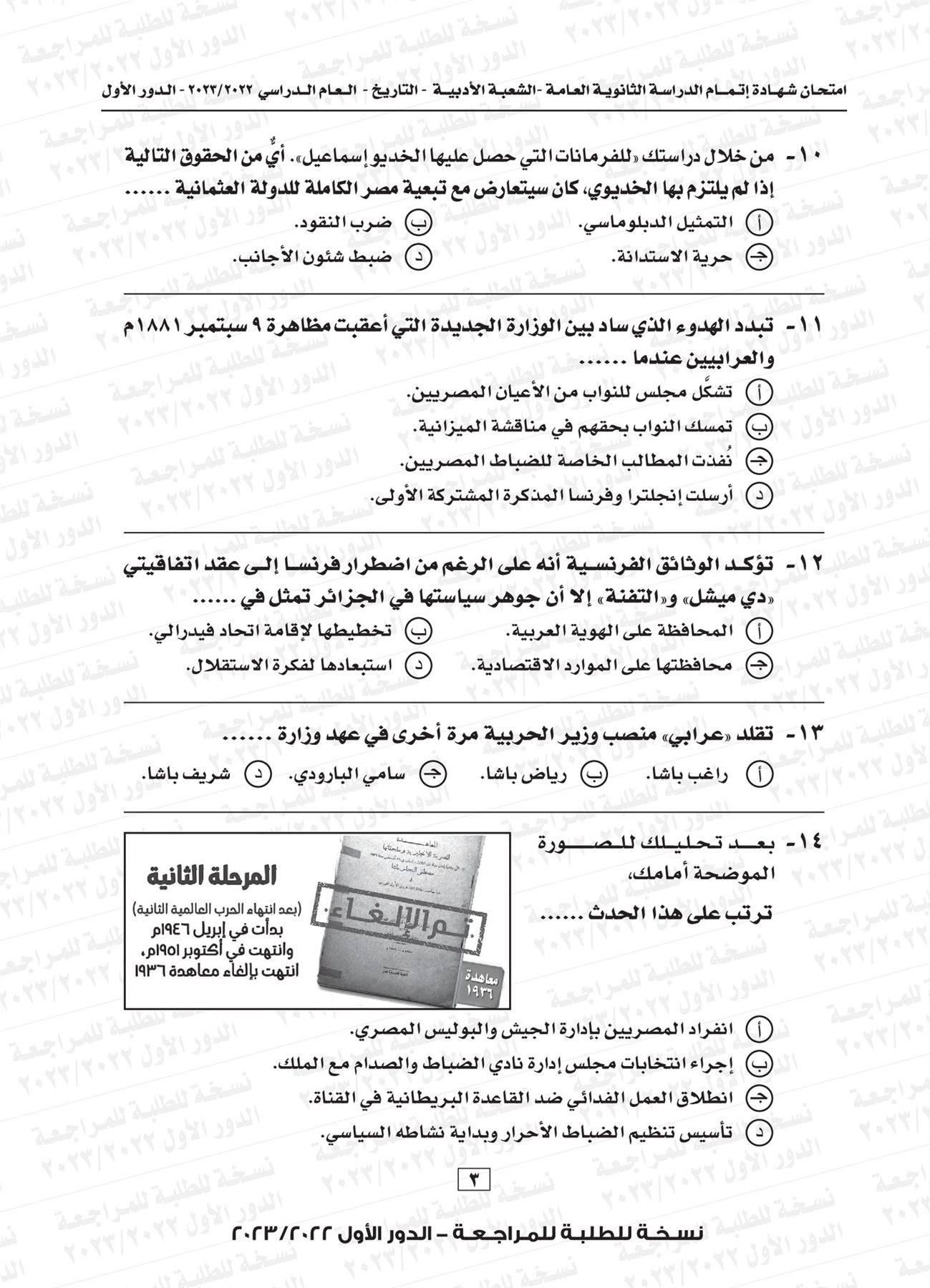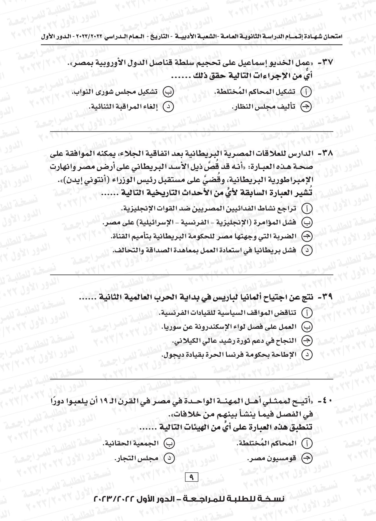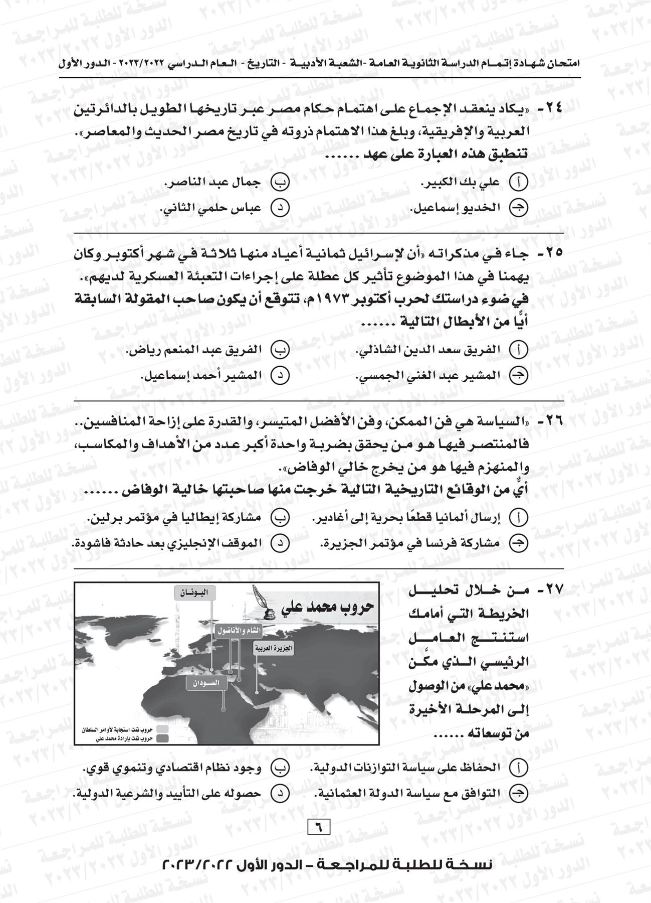ونقدم لكم نموذج لامتحان التاريخ للثانوية العامة العام الماضي 2023 بإجابتها النموذجية: