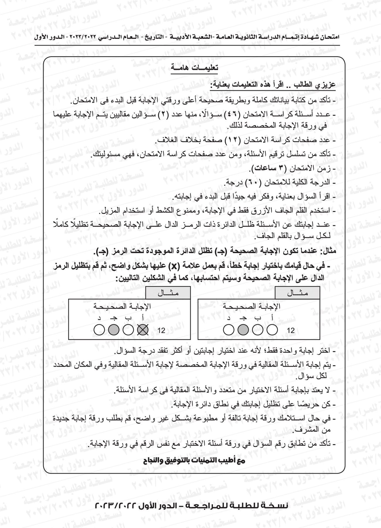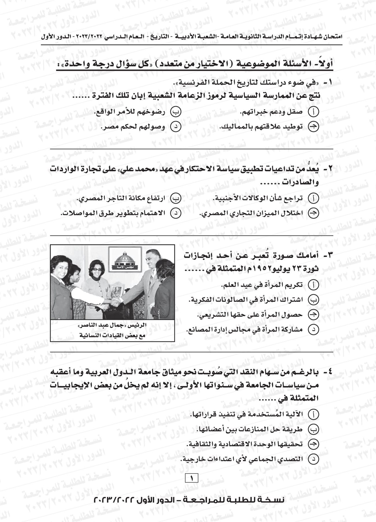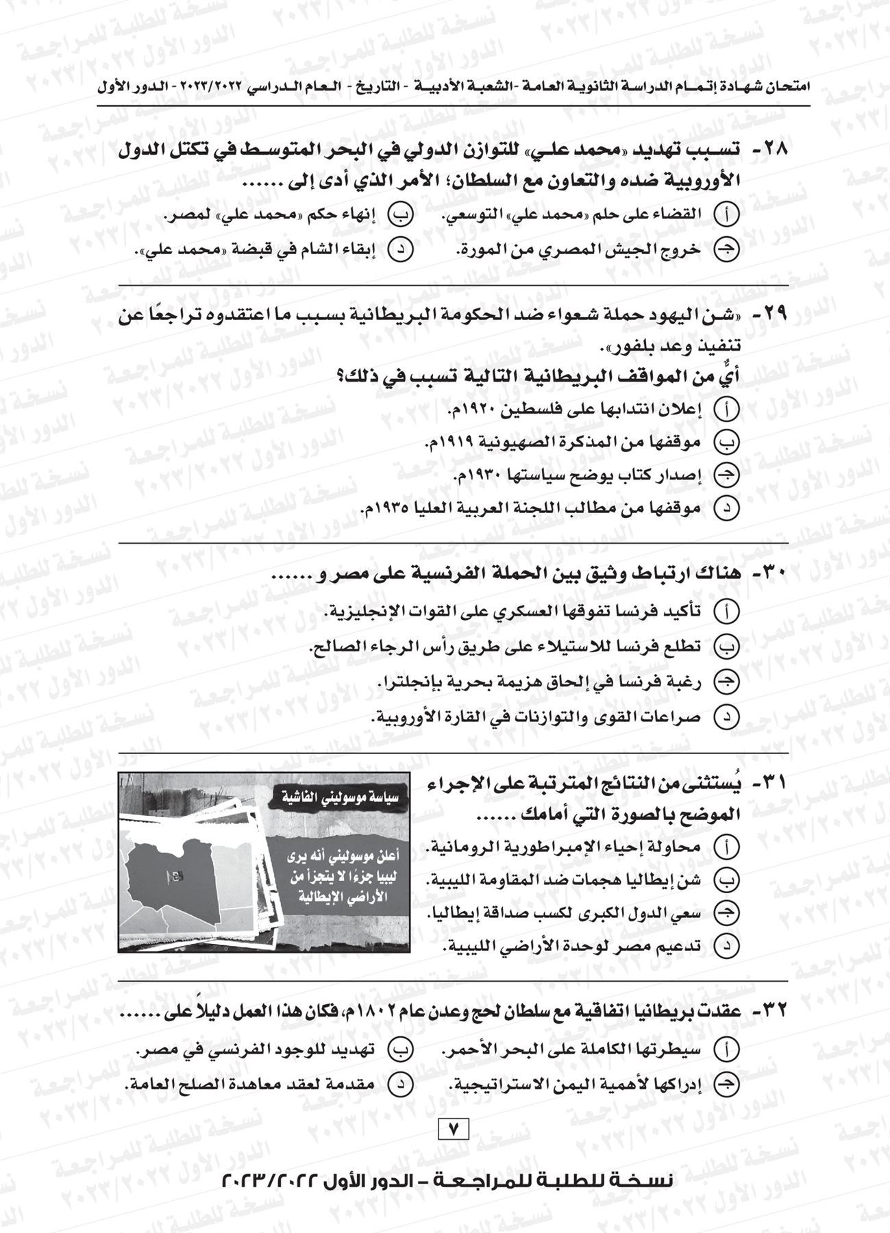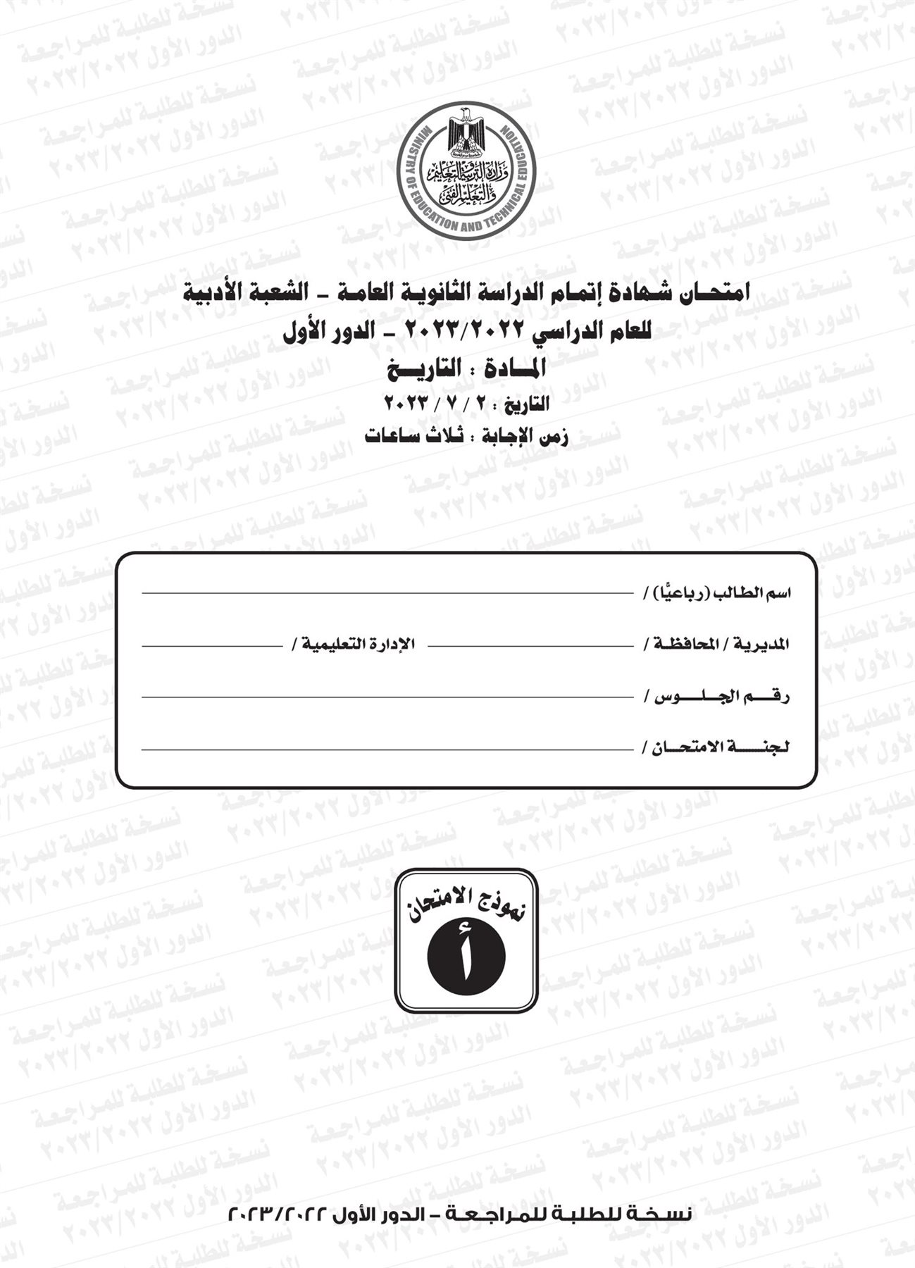 ونقدم لكم نموذج لامتحان التاريخ للثانوية العامة العام الماضي 2023 بإجابتها النموذجية: