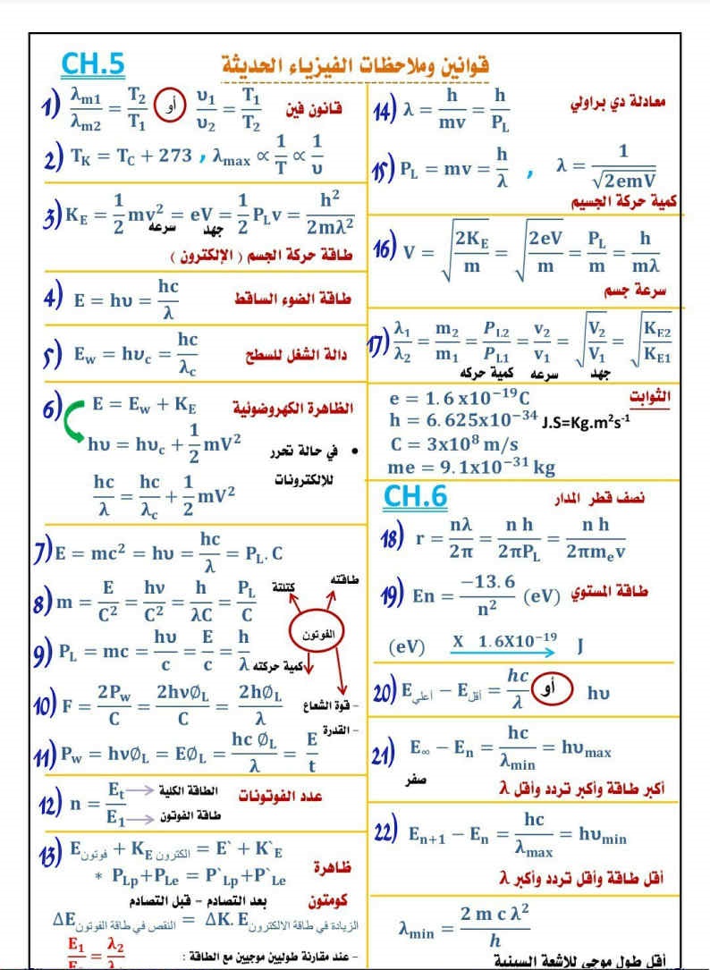 - مراجعة قوانين ورسومات الفيزياء
