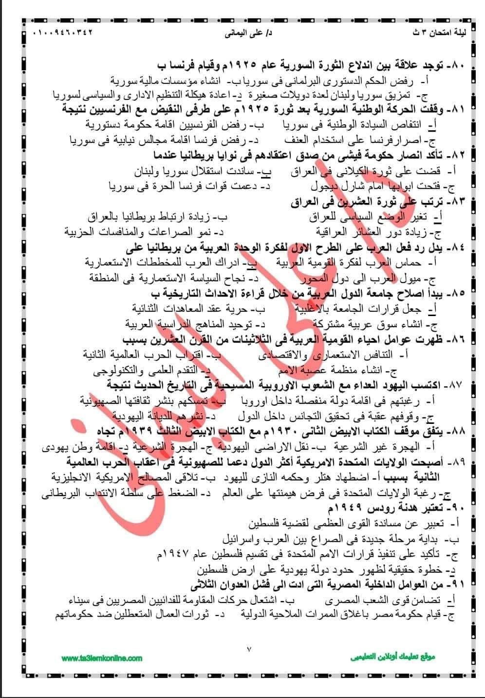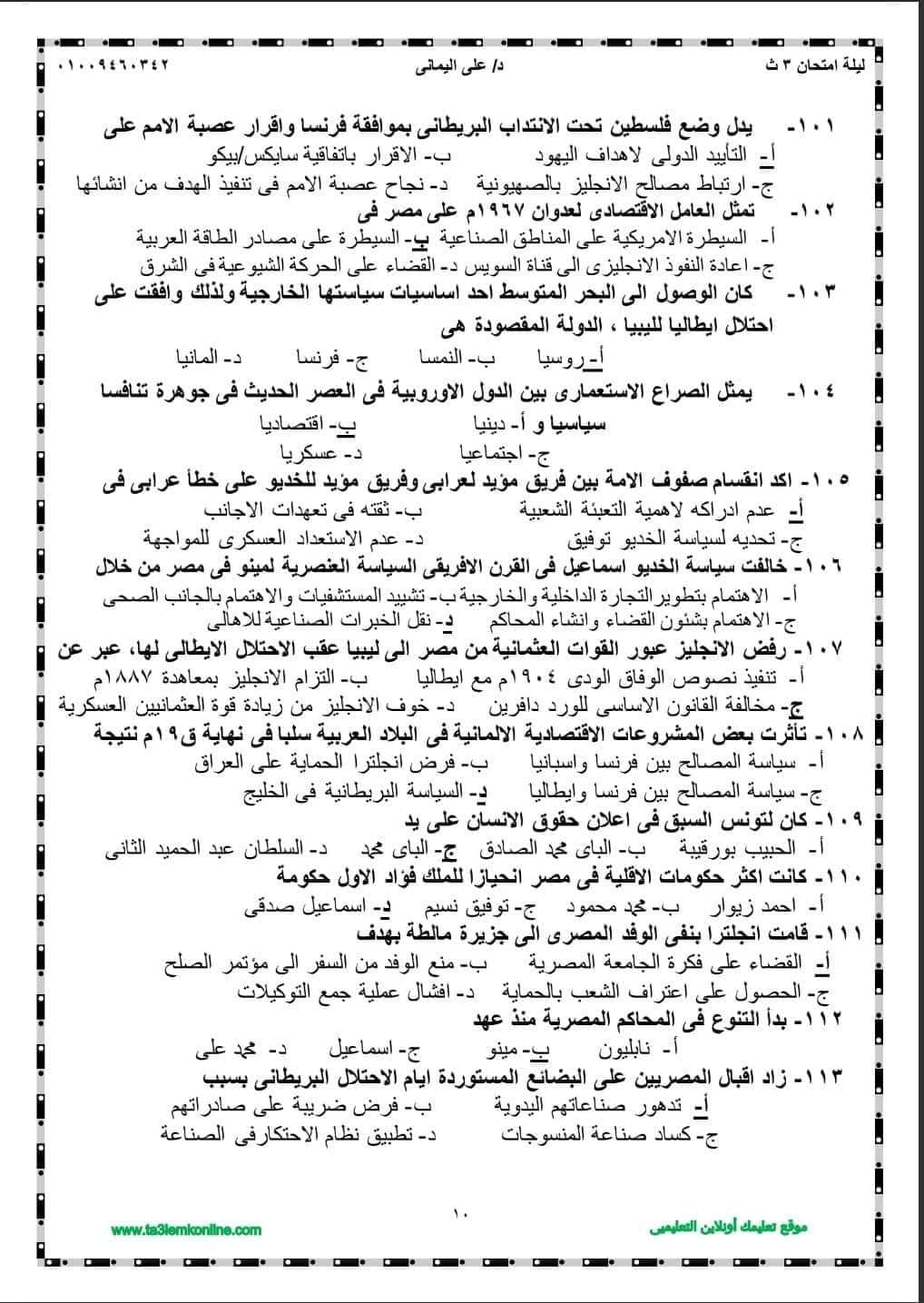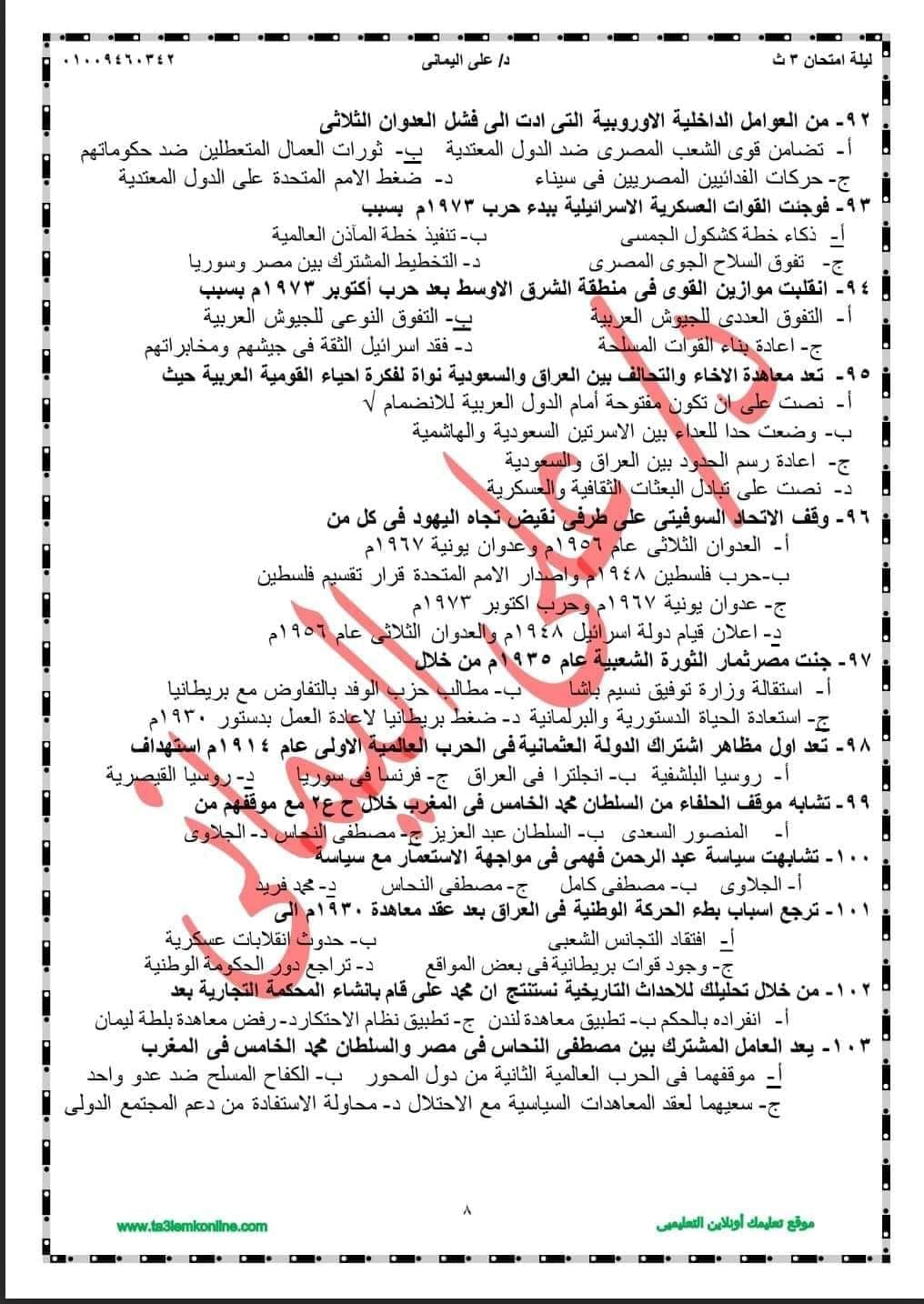الثانوية العامة 2024.. مراجعة ليلة الامتحان في التاريخ بالإجابات