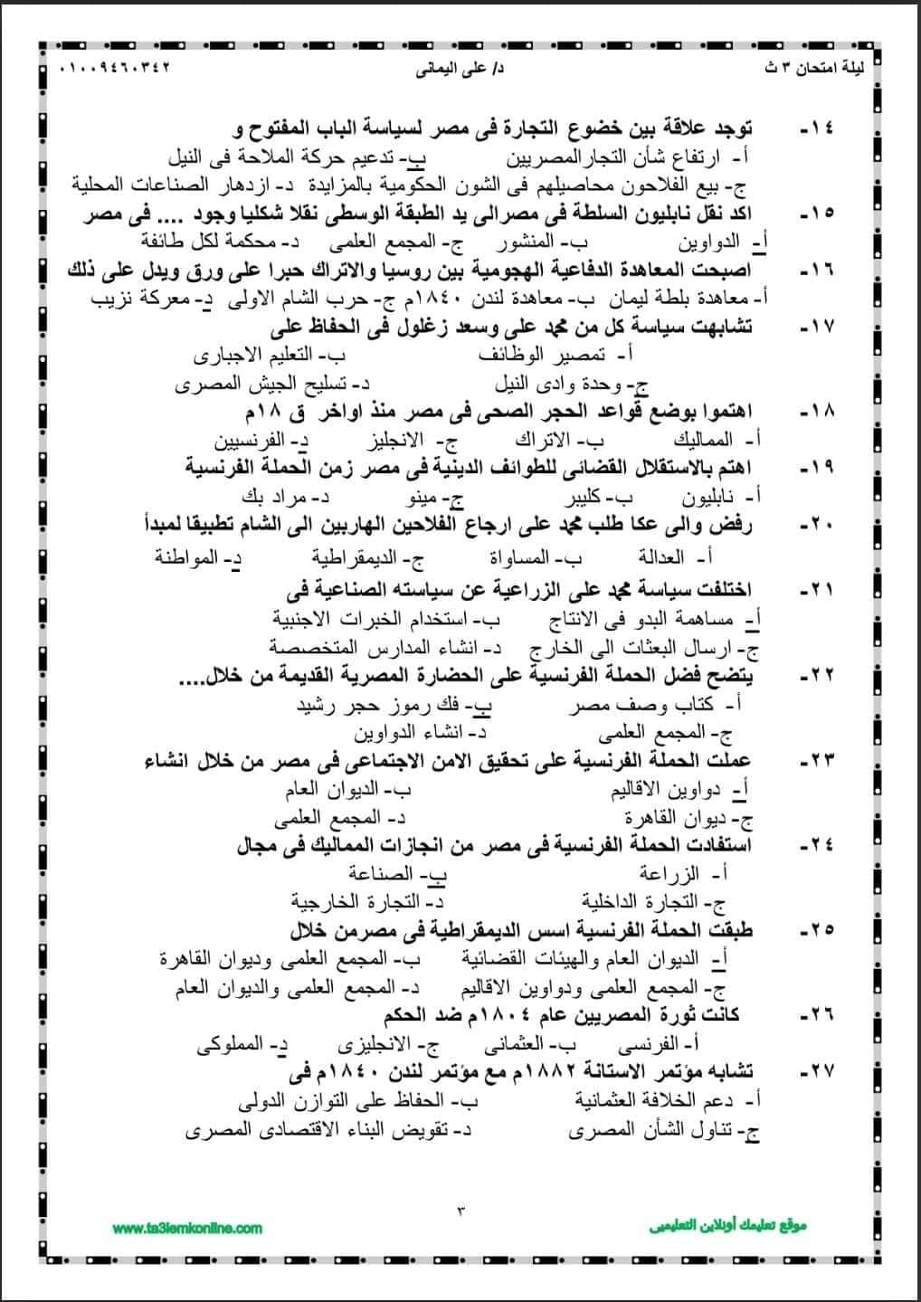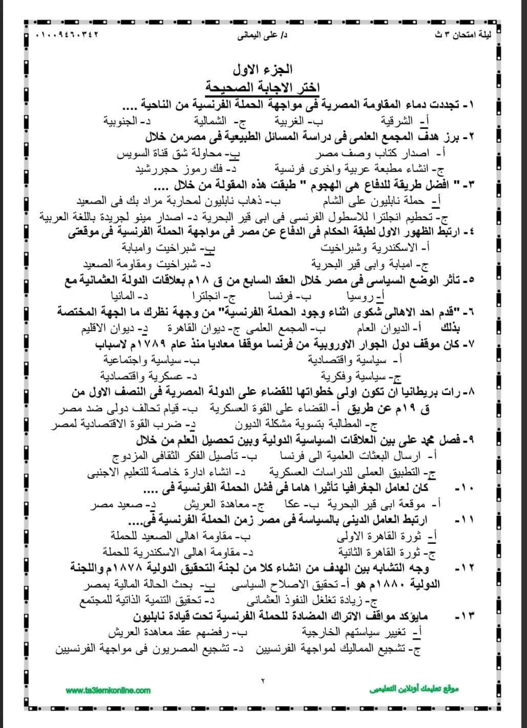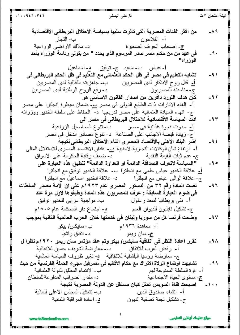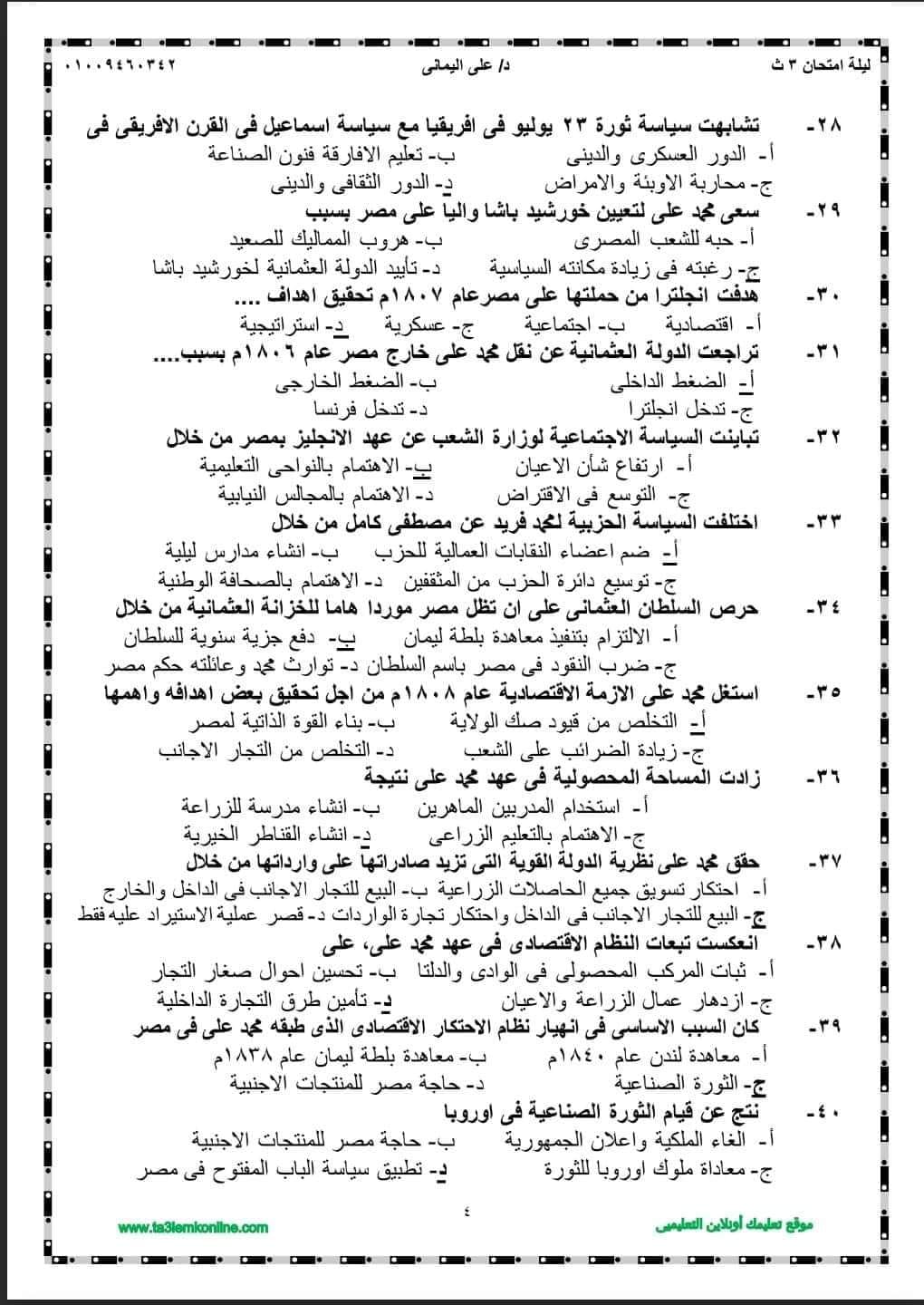 الثانوية العامة 2024.. مراجعة ليلة الامتحان في التاريخ بالإجابات