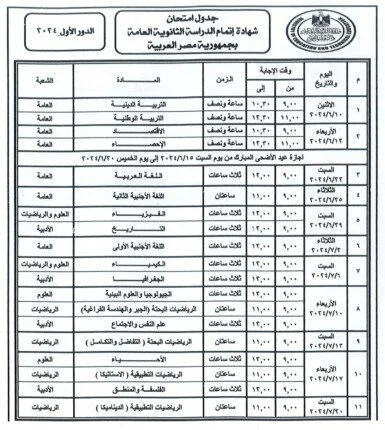 جدول امتحانات الثانوية العامة 2024| المواد المتبقية بعد مادتي التاريخ والفيزياء