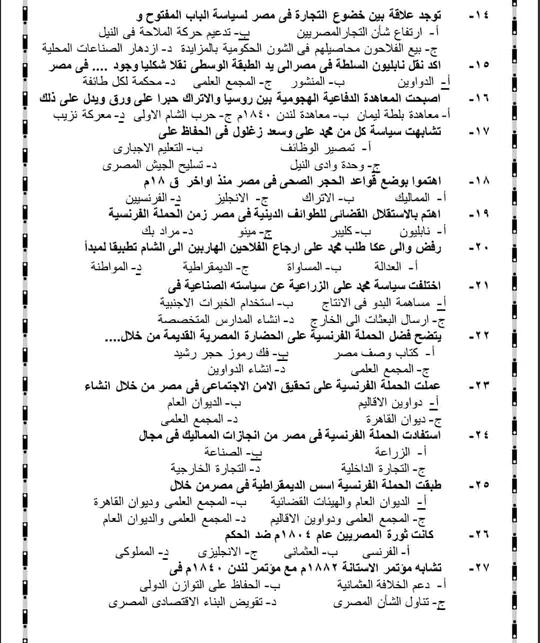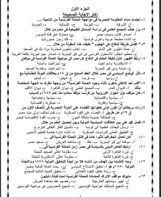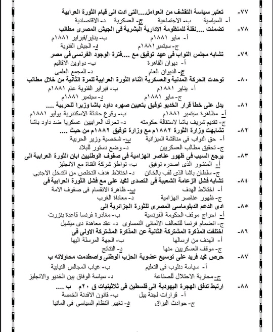 مراجعة ليلة الامتحان والأسئلة المتوقعة في امتحان التاريخ للثانوية العامة