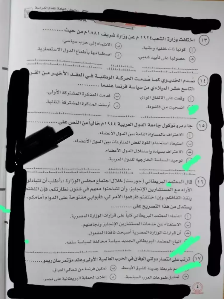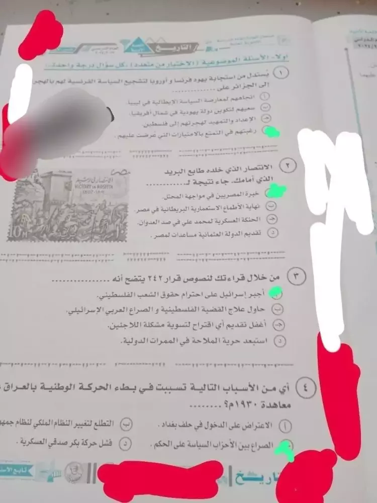 جاءت إجابات امتحان التاريخ للصف الثالث الثانوي 2024 على النحو التالي: