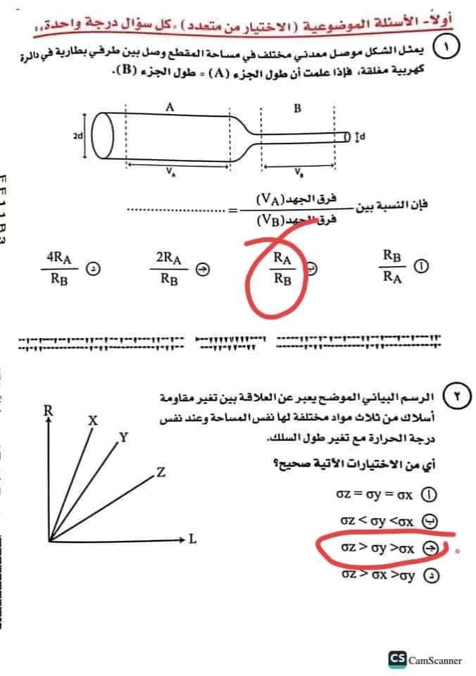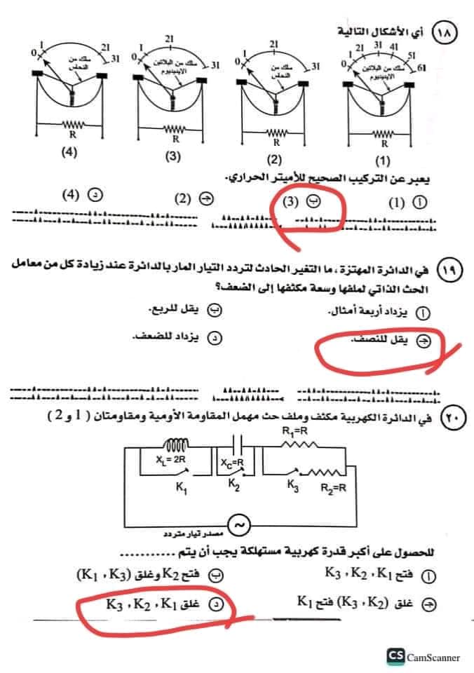 ويمكن الإطلاع على حل امتحان الفيزياء للصف الثالث الثانوي من الصور التالية: