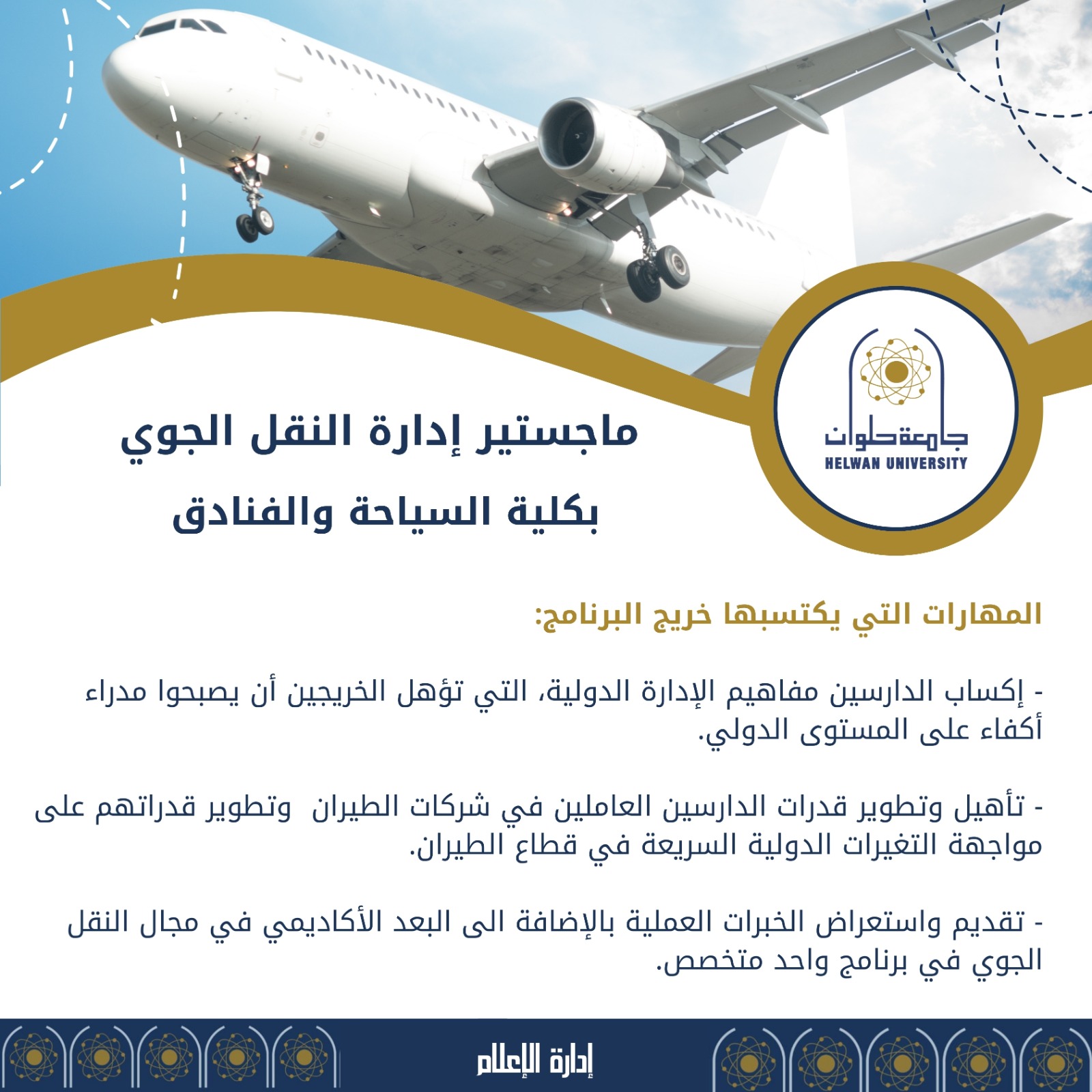 تعرف على ماجستير إدارة النقل الجوي بكلية السياحة والفنادق جامعة حلوان