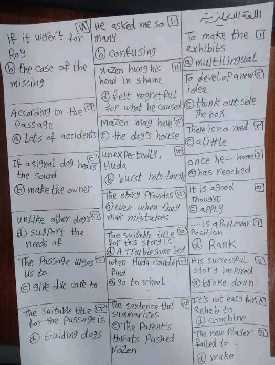 - امتحان الإنجليزي للثانوية العامة
