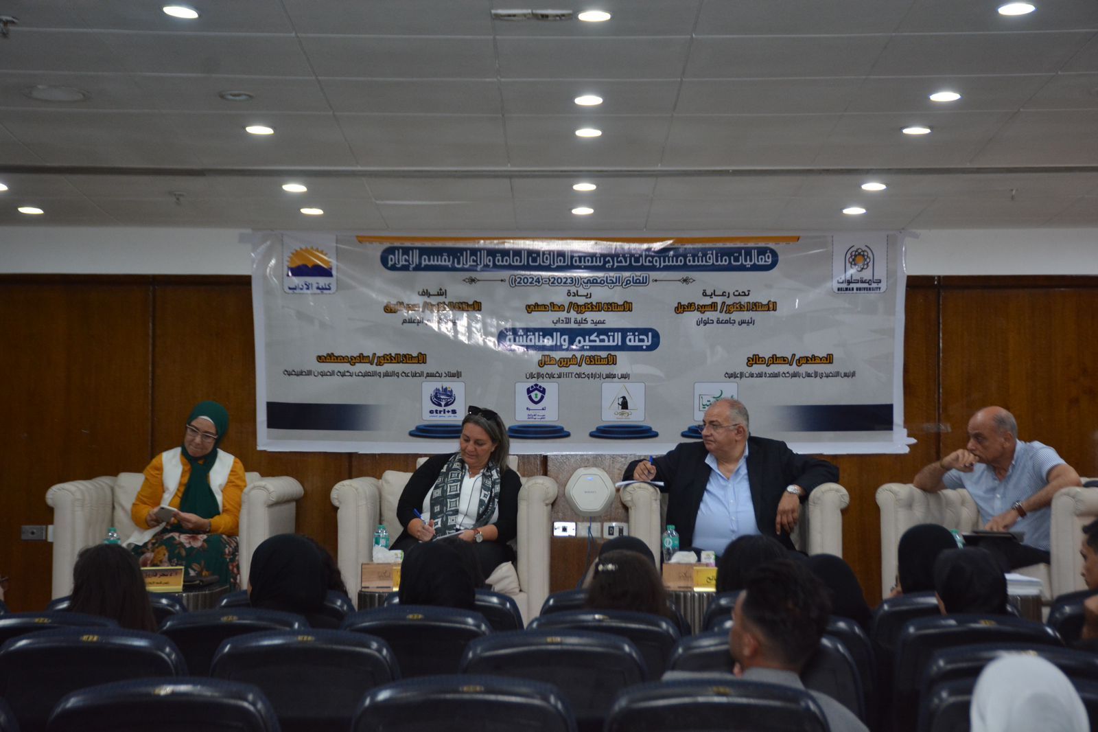 ناقش طلاب شعبة العلاقات العامة والإعلان بقسم الإعلام بكلية الآداب جامعة حلوان مشروعات تخرجهم تحت رعاية الدكتور السيد قنديل رئيس جامعة حلوان، والدكتورة مها حسني عميد كلية الآداب، وبإشراف الدكتورة سحر فاروق رئيس القسم.