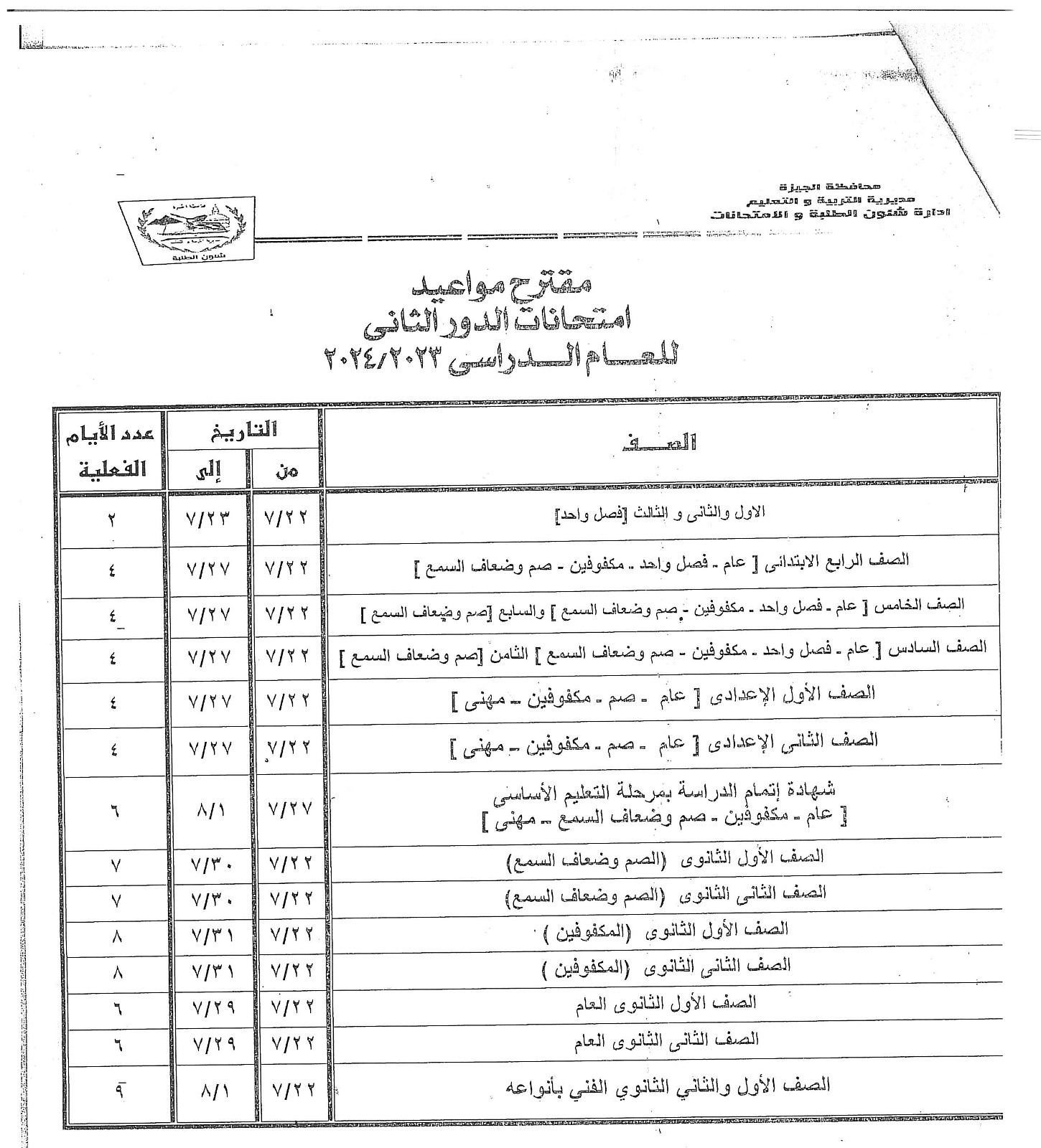 عاجل.. ننشر جداول امتحانات الترم الثاني 2024 في الجيزة كاملة