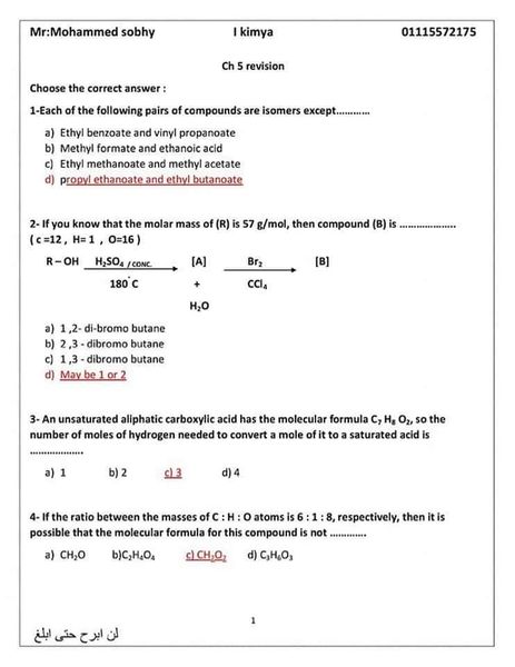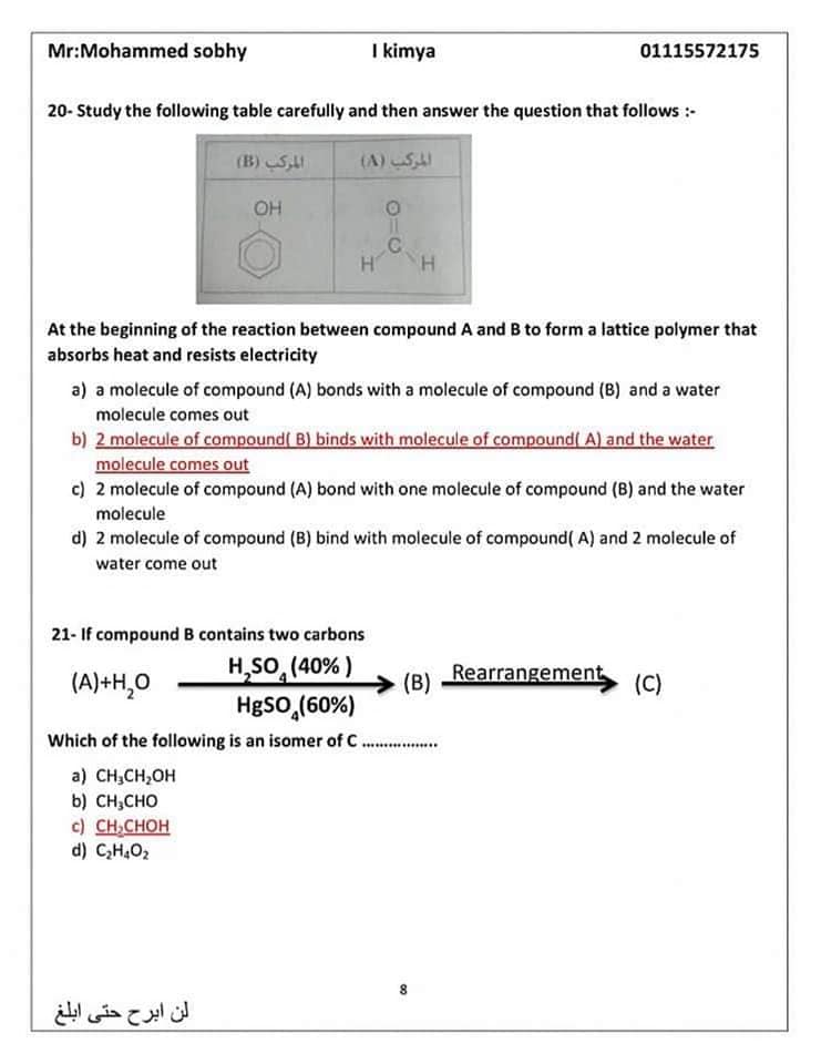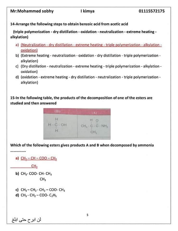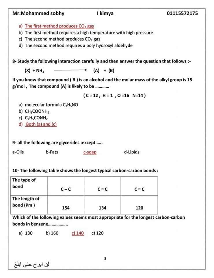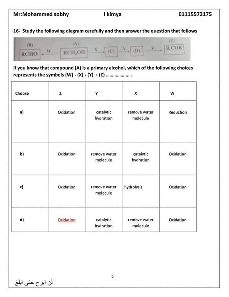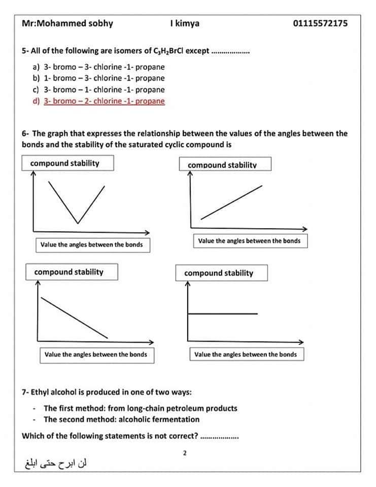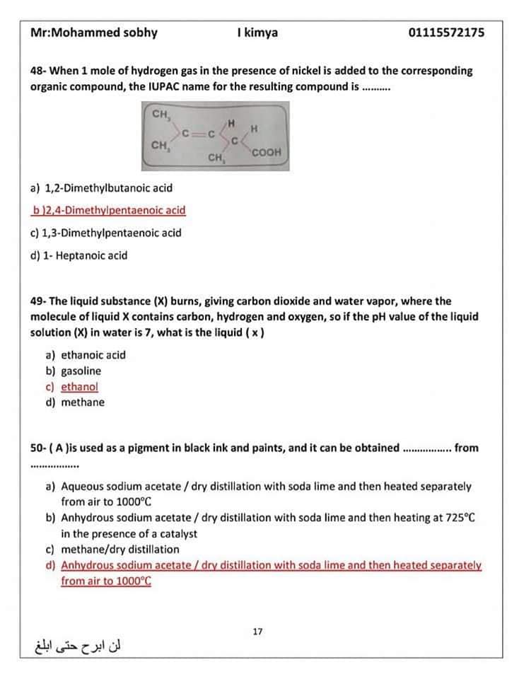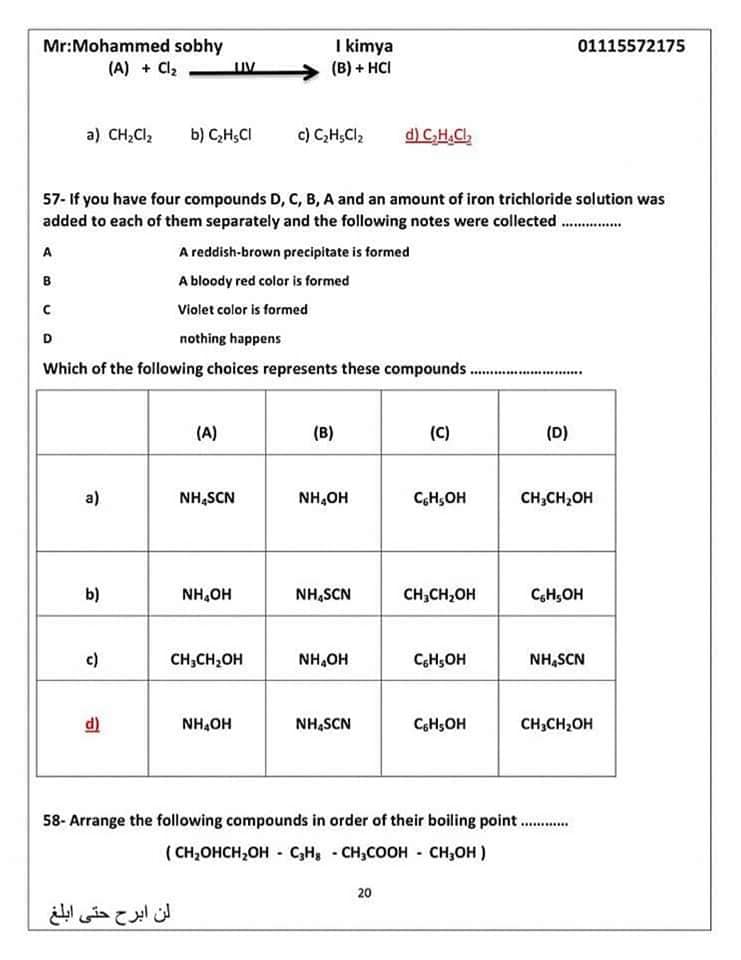 عاجل| مراجعة ليلة الامتحان.. الأسئلة المتوقعة في الكيمياء للثانوية العامة 2024