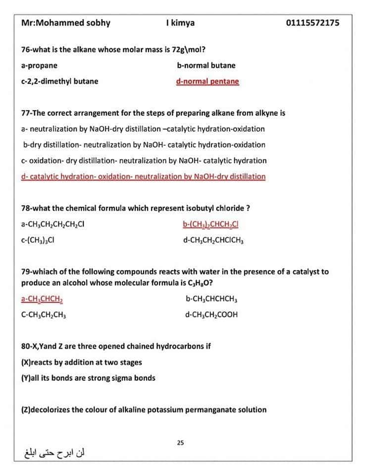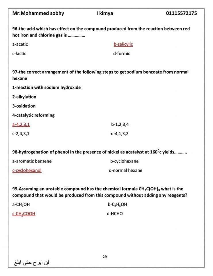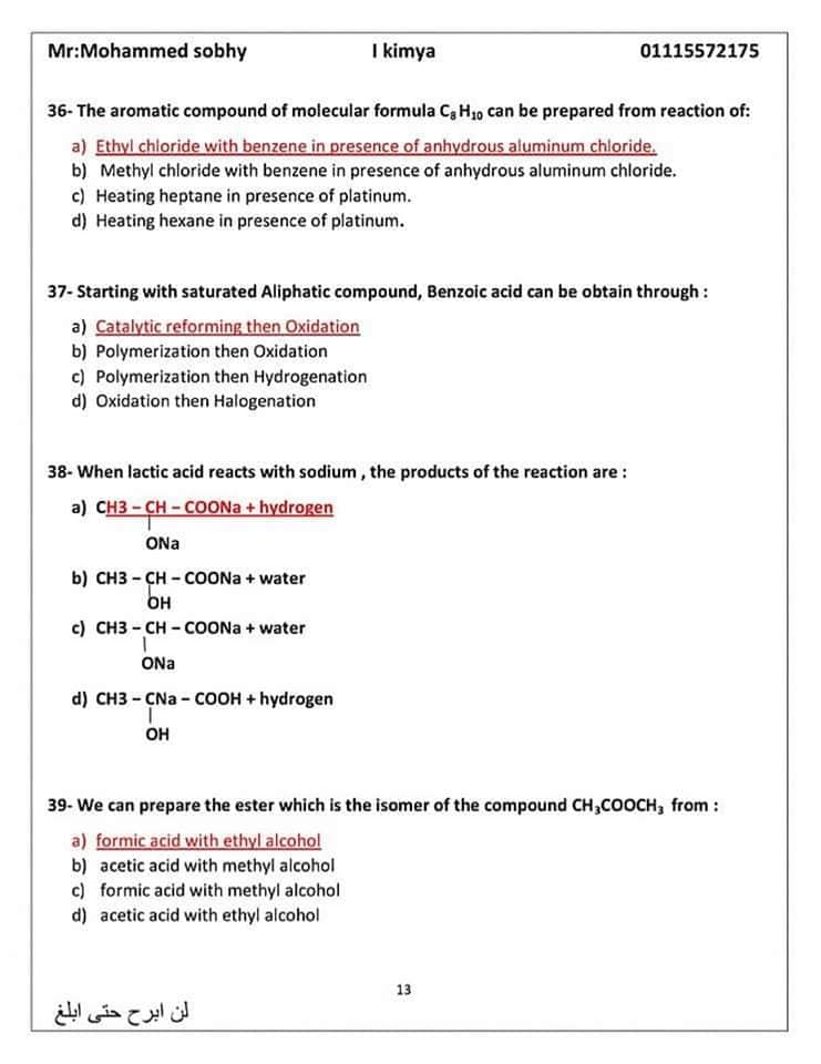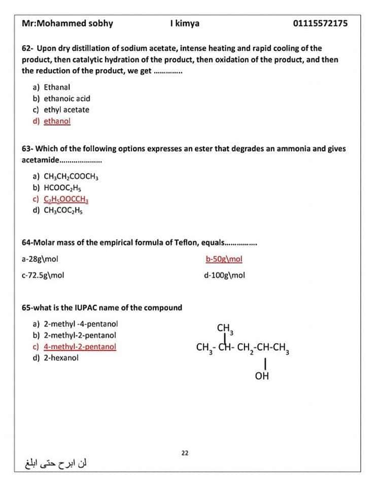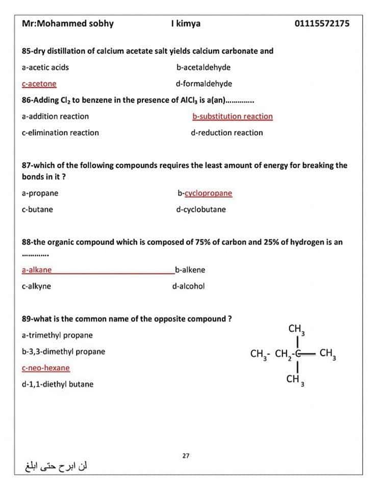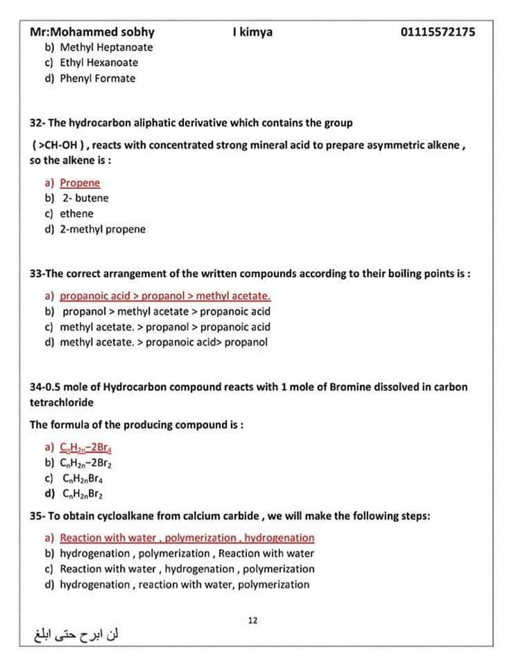 الأسئلة المتوقعة في الكيمياء للثانوية العامة 2024