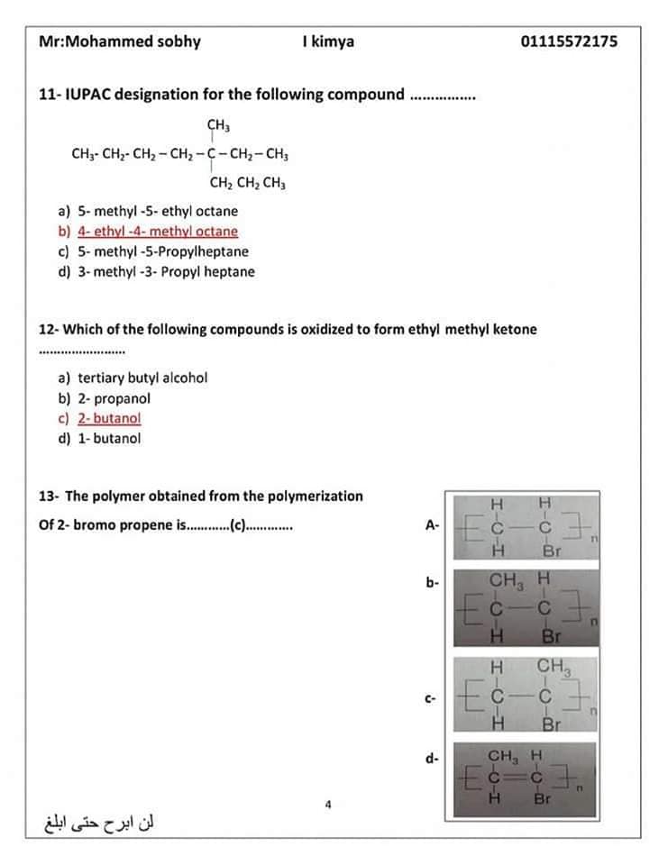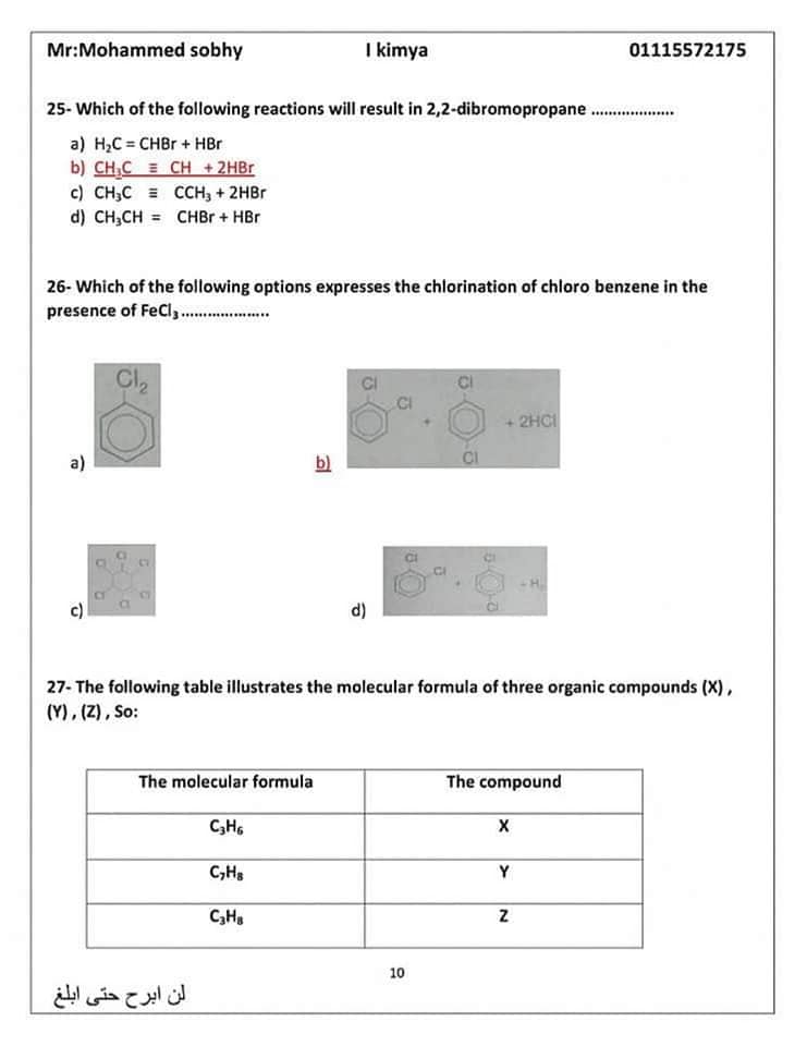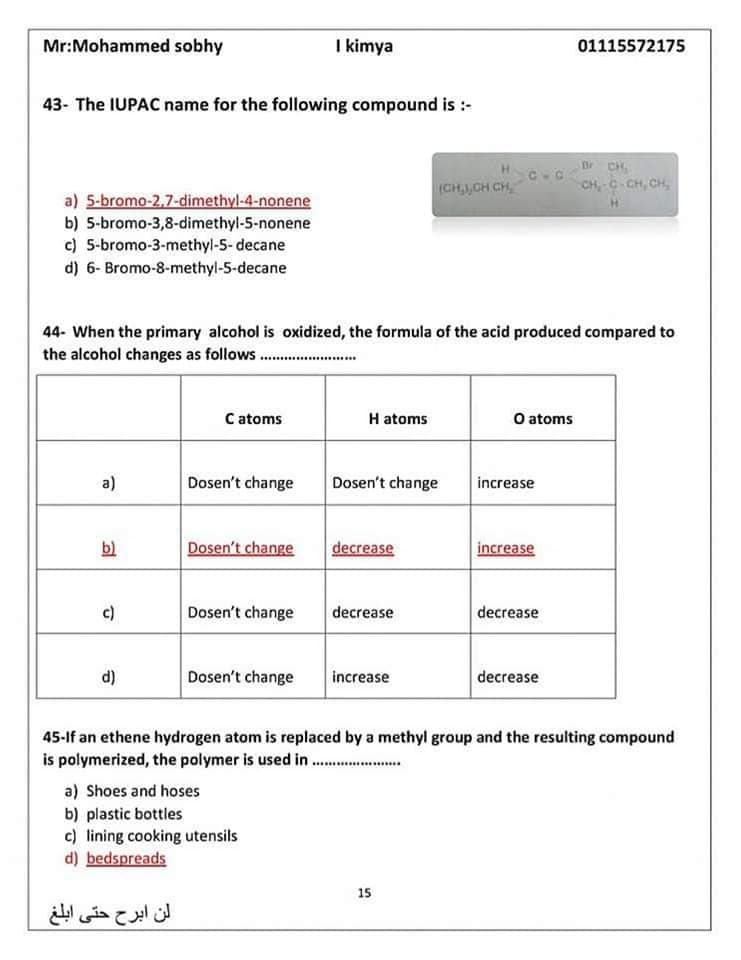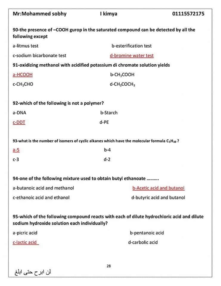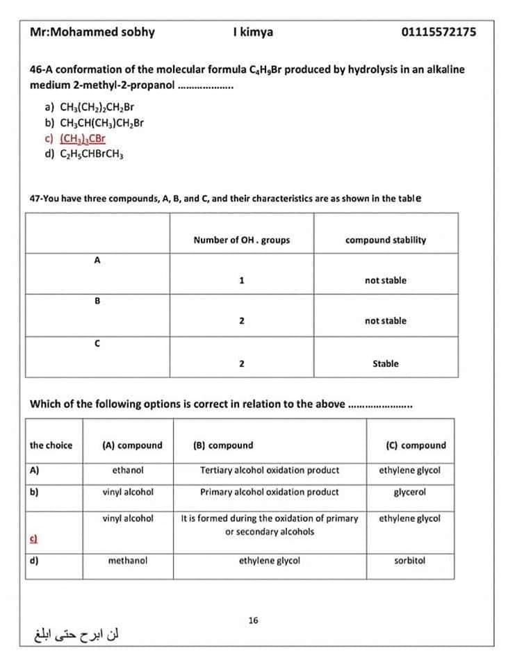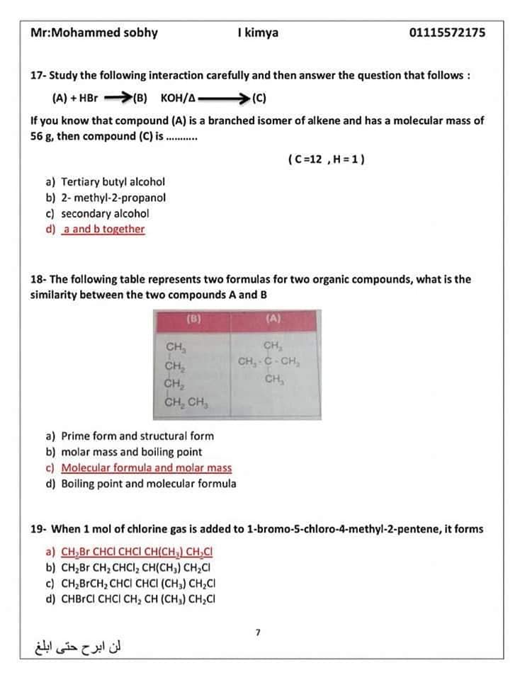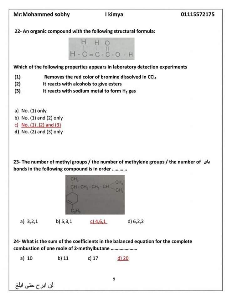 الأسئلة المتوقعة في الكيمياء للثانوية العامة 2024