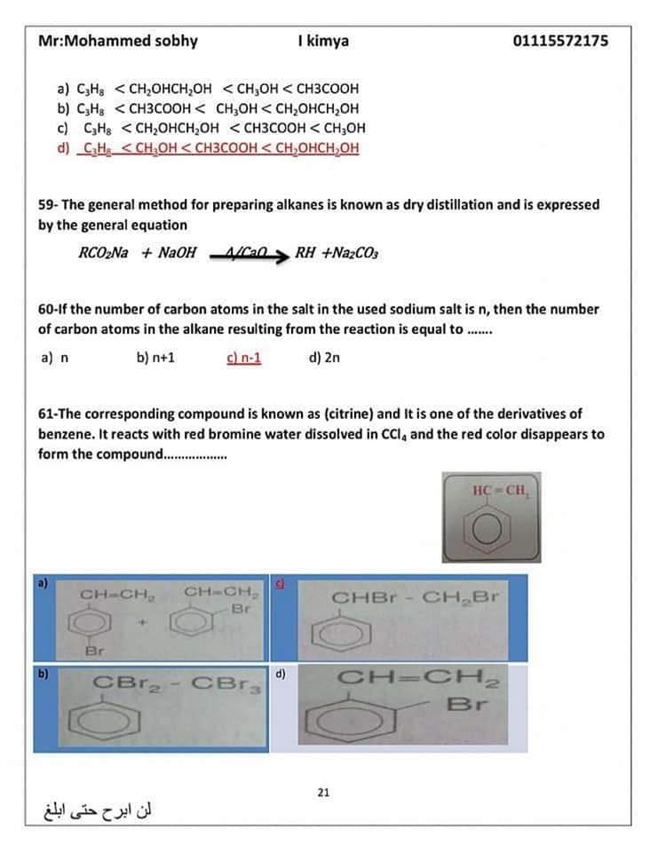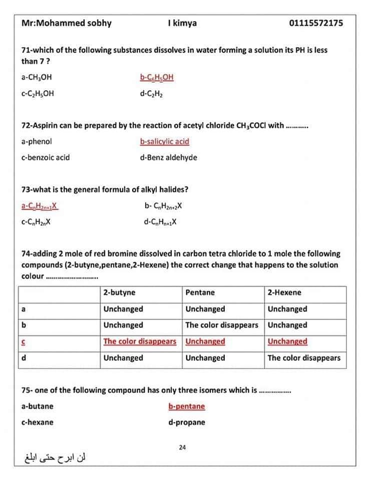 مراجعة ليلة الامتحان في الكيمياء للثانوية العامة 2024