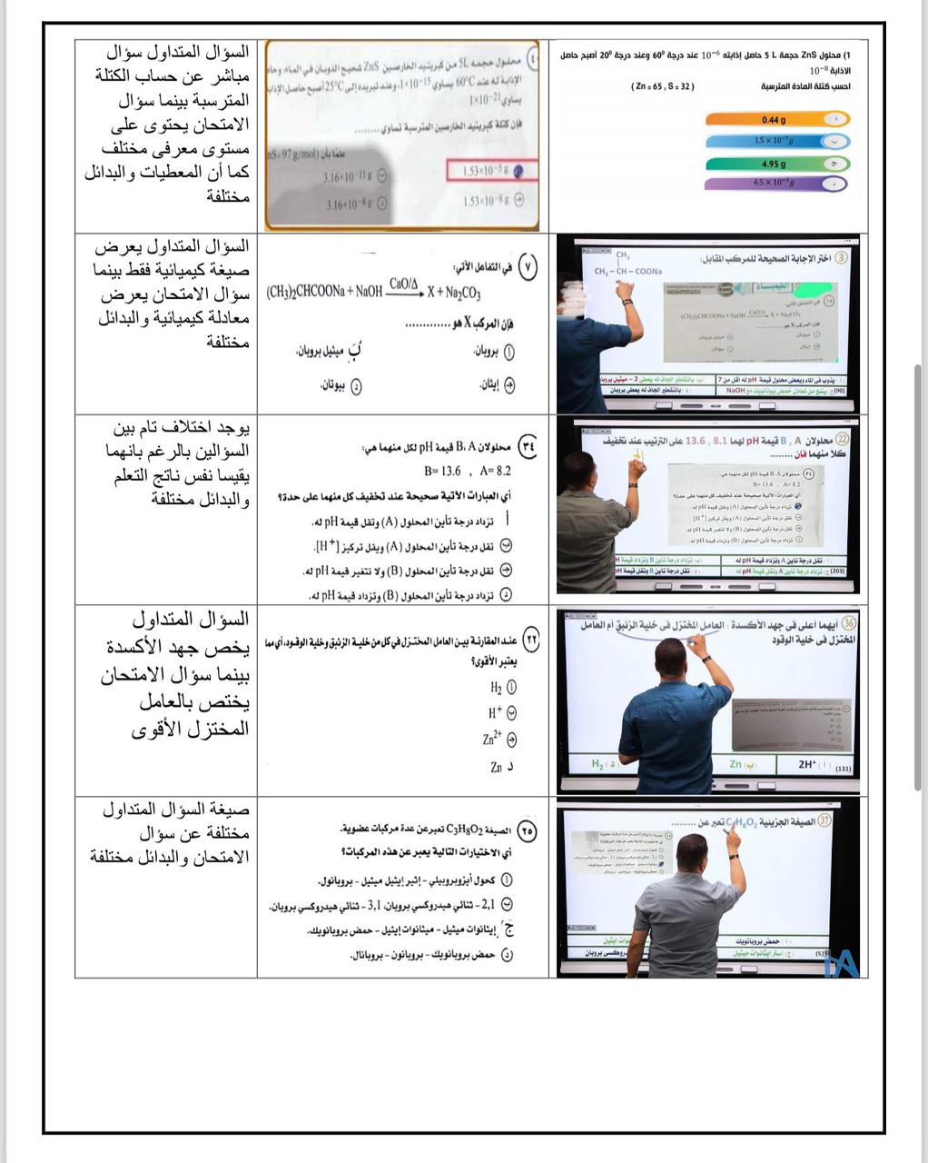 ردا على ما أثير عبر وسائل التواصل الاجتماعى عن امتحان الكيمياء دور أول للعام الدراسي 2024/2023 والذى يتعلق بوجود بعض الأسئلة التي وردت بامتحان الكيمياء وتم تداولها من قبل بعض الاشخاص على صفحاتهم أو منصاتهم التعليمية من باب الدعاية والاعلان، تؤكد وزارة التربية والتعليم والتعليم الفني أن لجنة فنية متخصصة قامت بفحص الفيديوهات المعروضة بعد الامتحان والتي يستعرض خلالها بعض الأشخاص مدى مطابقة المراجعات الخاصة بهم لأفكار الامتحان، حيث توصلت اللجنة لعدم تطابق الأسئلة المتداولة مع أسئلة الامتحان.