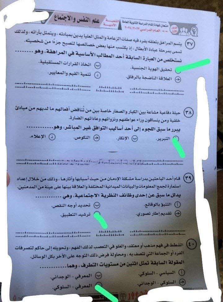 صفحات الغش تنشر أسئلة علم النفس والاجتماع للثانوية بعد بدء اللجنة