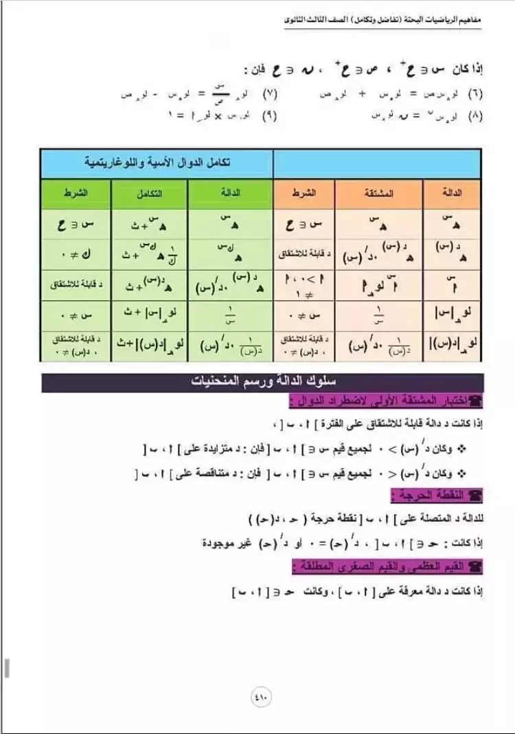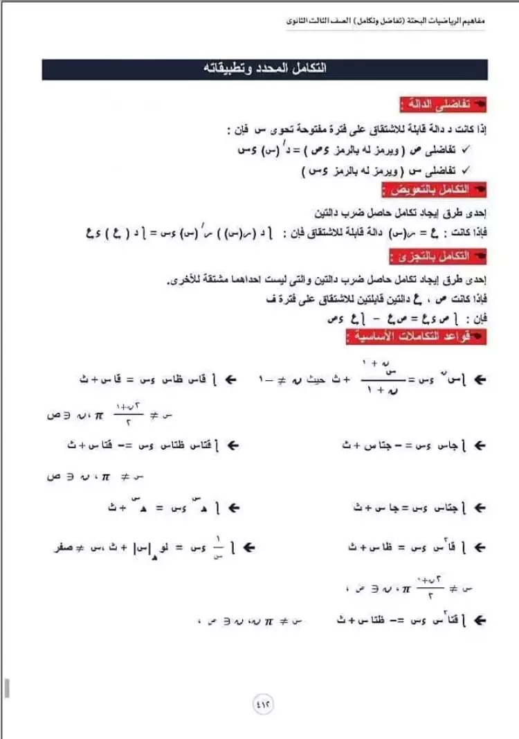كما يمكنك الإطلاع على باقي مفاهيم التفاضل والتكامل للصف الثالث الثانوي للعام الدراسي 2024/2023 من خلال الصور التالية: