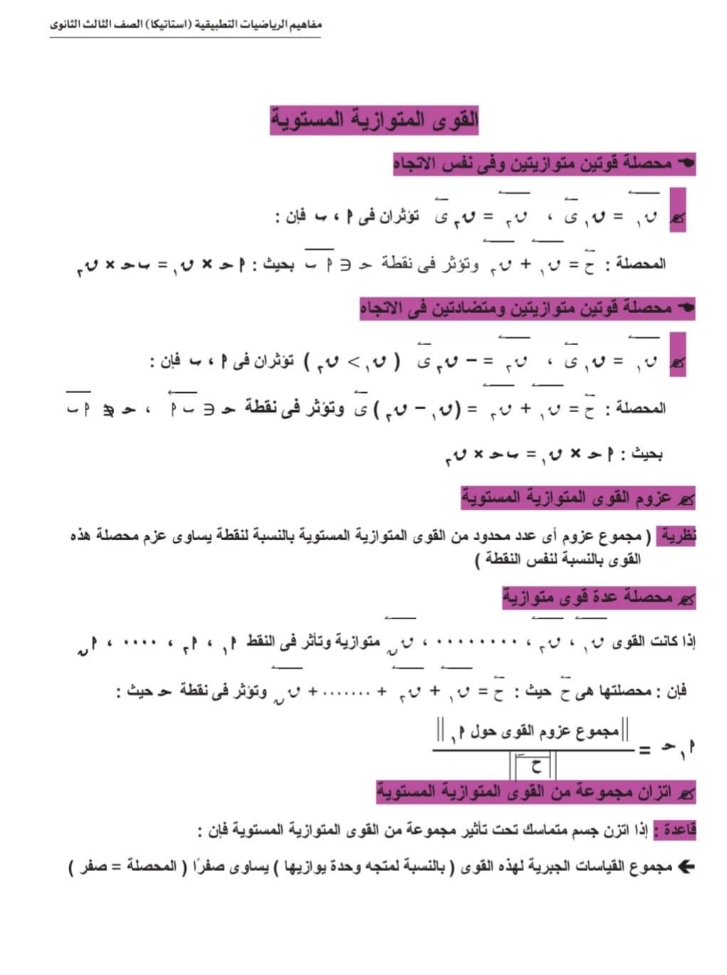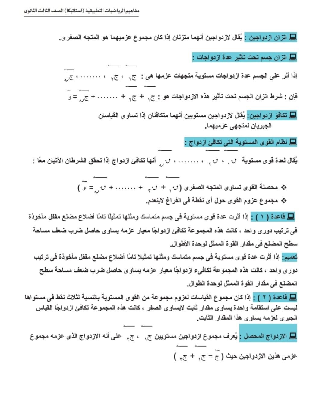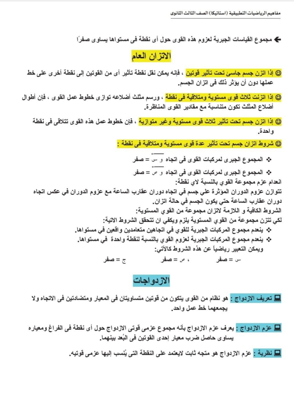 الثانوية العامة 2024.. ورقة مفاهيم امتحان مادة الاستاتيكا