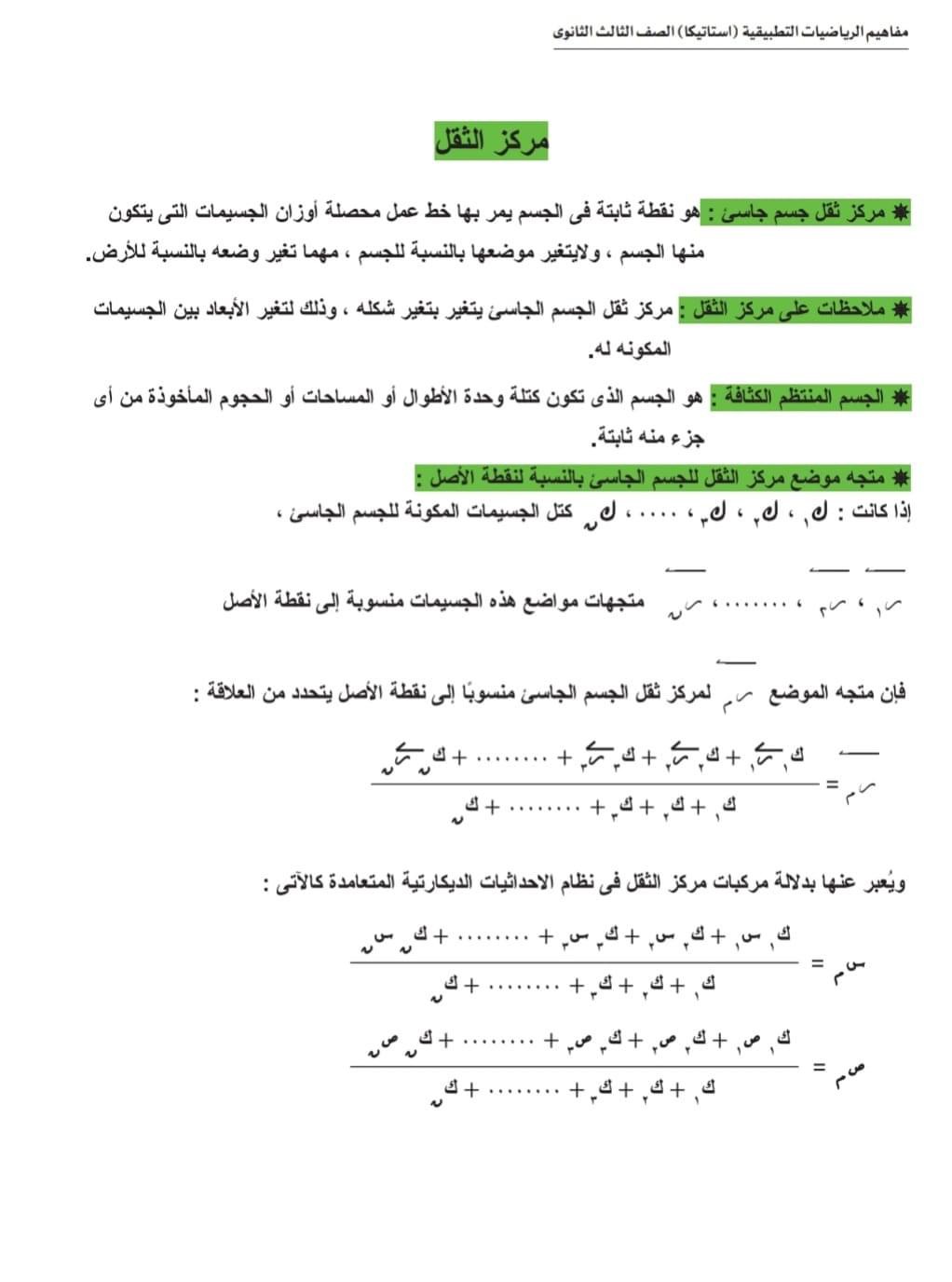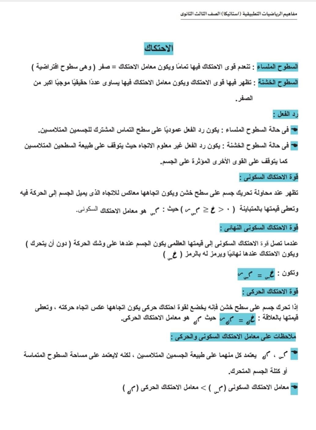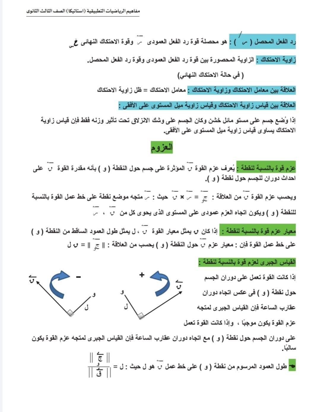 الثانوية العامة 2024.. ورقة مفاهيم امتحان مادة الاستاتيكا