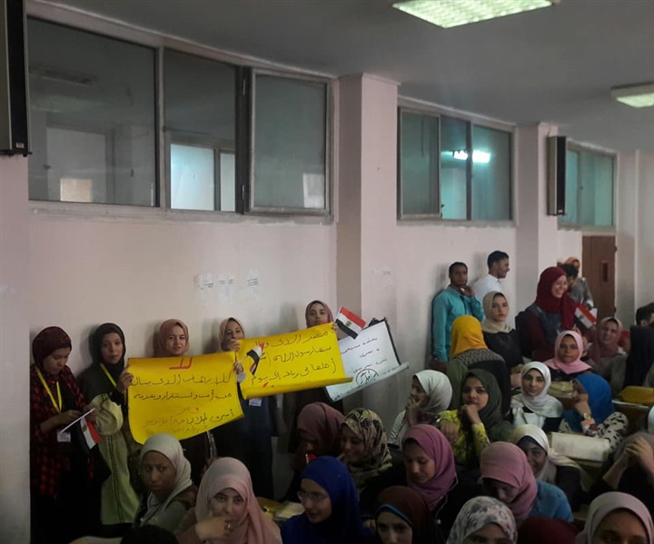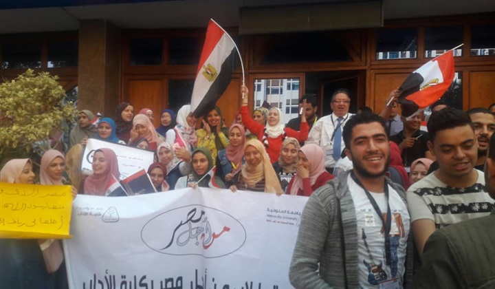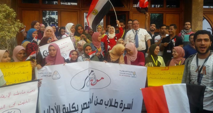 حيث أن الوقفة تحت رعاية الدكتور أسامة مدنى عميد الكلية، والدكتورة ايملى حمادة وكيل الكلية لشئون التعليم والطلاب، وحضر الوقفة أعضاء أسرة طلاب من أجل مصر، وطلاب الأقسام العلمية، وأعضاء هيئة التدريس بالكلية.