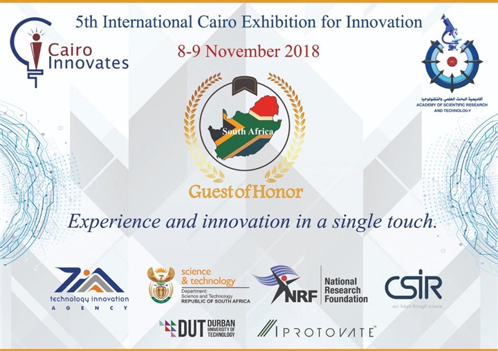 تنظم أكاديمية البحث العلمي والتكنولوجيا معرض القاهرة الدولي الخامس للابتكار، تحت رعاية فخامة الرئيس عبد الفتاح السيسي في الفترة من 8 إلى 9 نوفمبر 2018 دولة جنوب إفريقيا ضيف الشرف الرسمي للمعرض هذا العام، في أرض المعارض بمدينة نصر في قاعة جهاز المشروعات الصغيرة والمتوسطة.