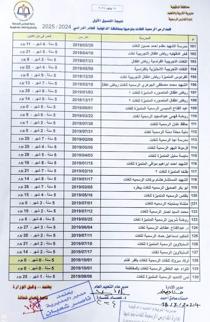 اعتماد نتيجة التنسيق الأول للمستوى الأول رياض أطفال للمدارس الرسمية للغات بالدقهلية
