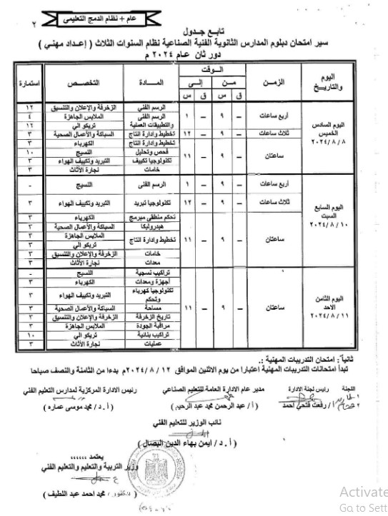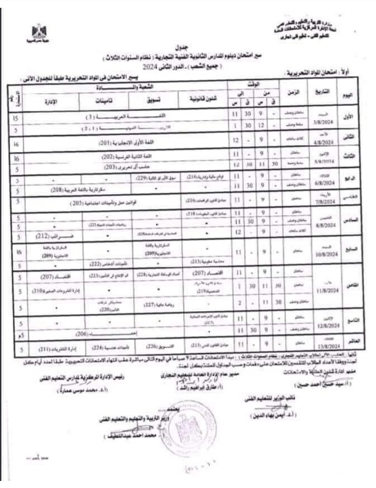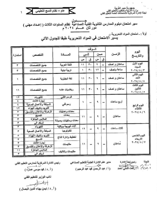 رسميًا.. جدول امتحانات الدور الثانى للدبلومات الفنية 2024