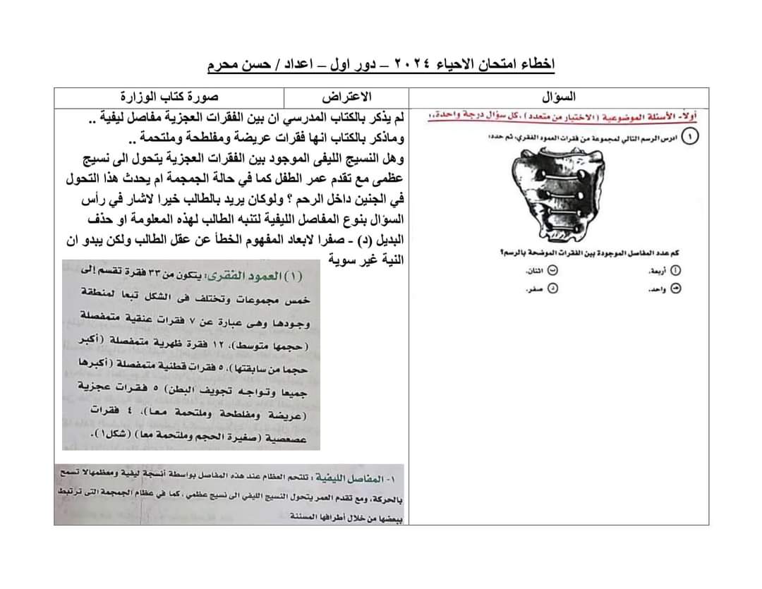 نشر حسن محرم مستشار مادة الأحياء الأسبق بوزارة التربية والتعليم والتعليم الفني، أدلة وجود أخطاء بامتحان مادة الأحياء بالثانوية العامة 2024 للشعبة العلمية علوم.