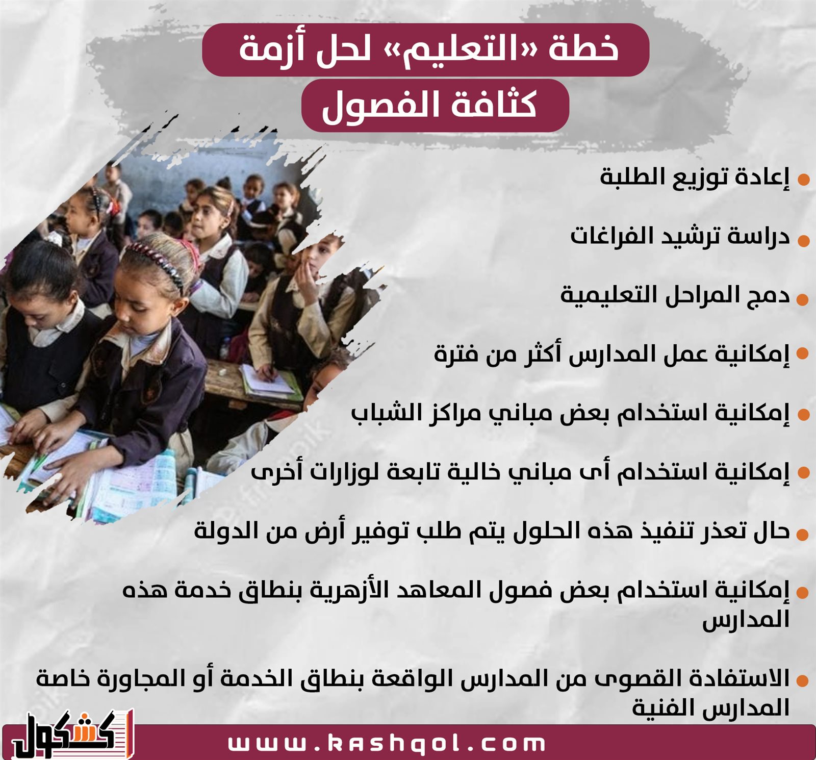 انفوجراف.. خطة التعليم لحل أزمة كثافة الفصول