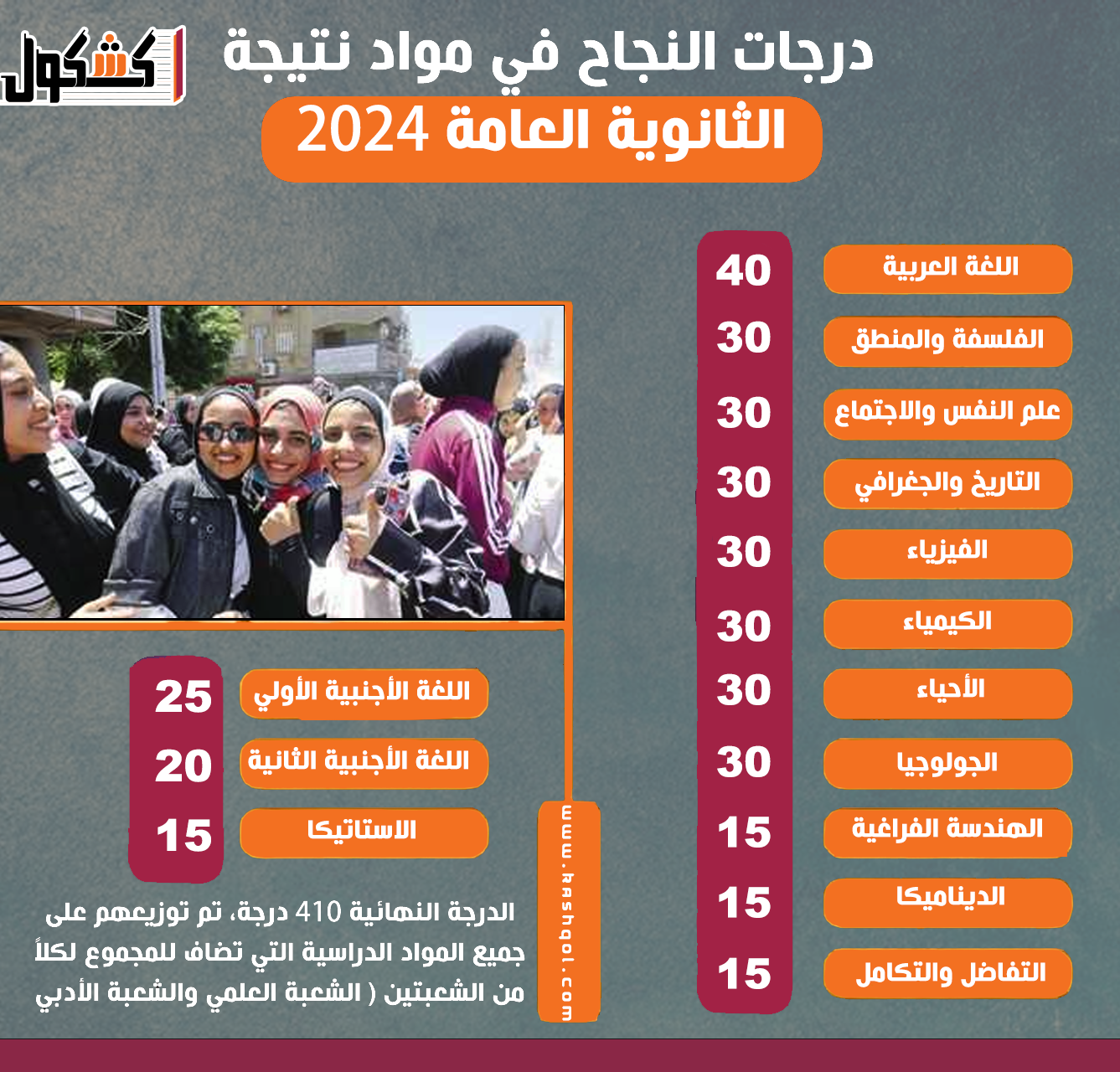 انفوجراف.. درجات النجاح في مواد نتيجة الثانوية العامة 2024