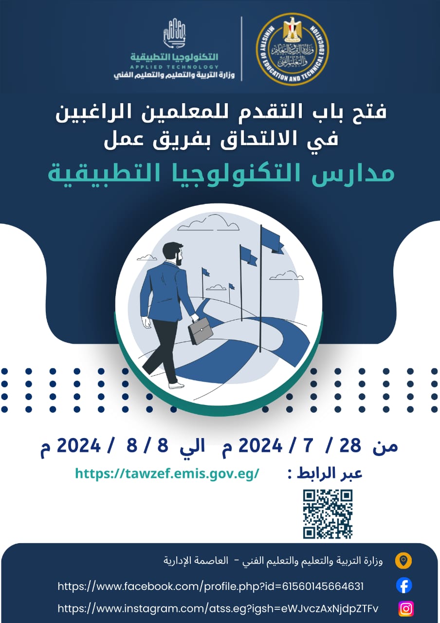 فتح باب التقدم للمعلمين والإداريين للالتحاق بفريق عمل مدارس التكنولوجيا التطبيقية